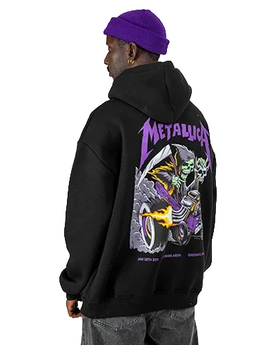 Yıkamalı Siyah Metallica Mor Sırt Baskılı Oversize Kapüşonlu Hoodie