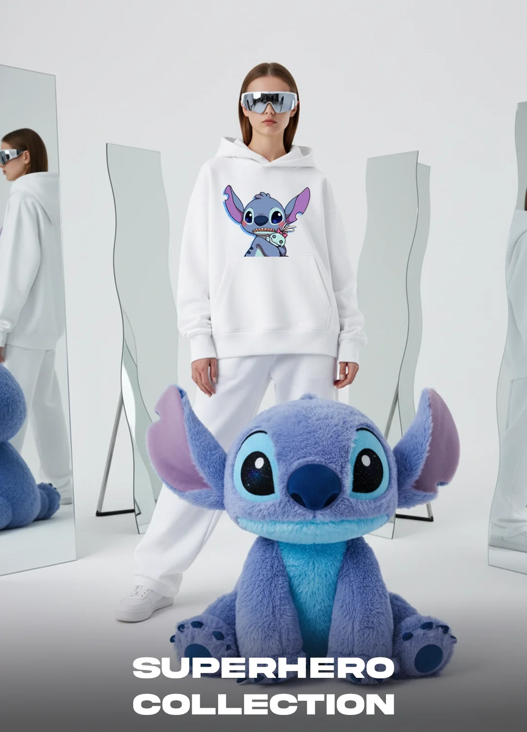 Stitch Baby Baskılı Oversize Unisex Yıkamalı Pembe Hoodie