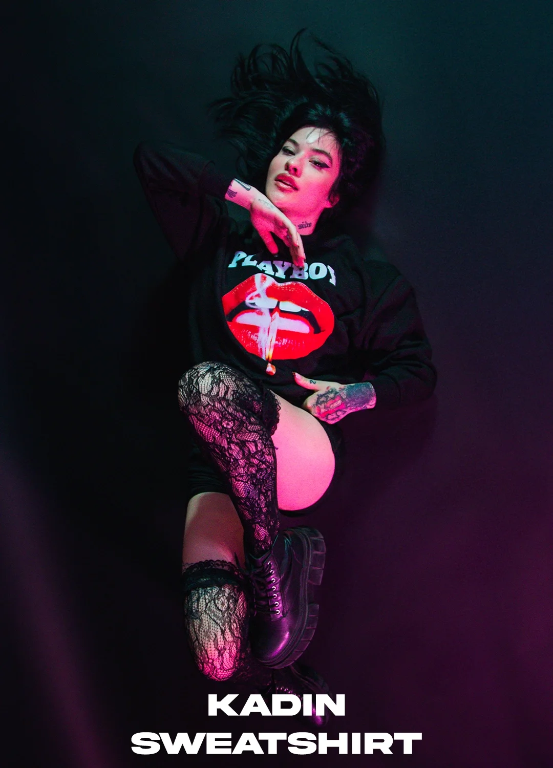 Silhouette Boobs V2 Baskılı Oversize Unisex Siyah Hoodie