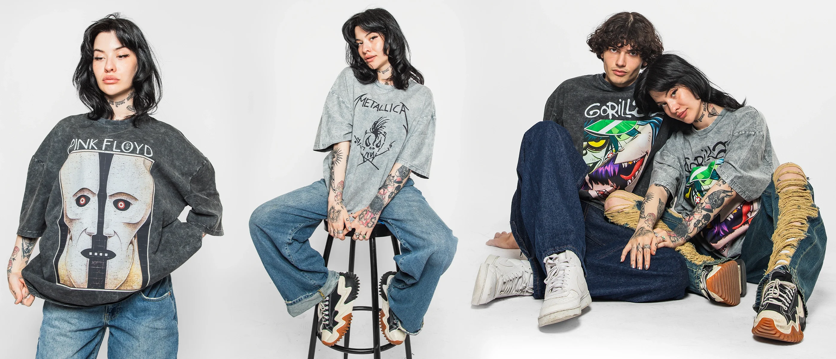 Mötley Crüe Baskılı Oversize Unisex Yıkamalı Beyaz Tshirt