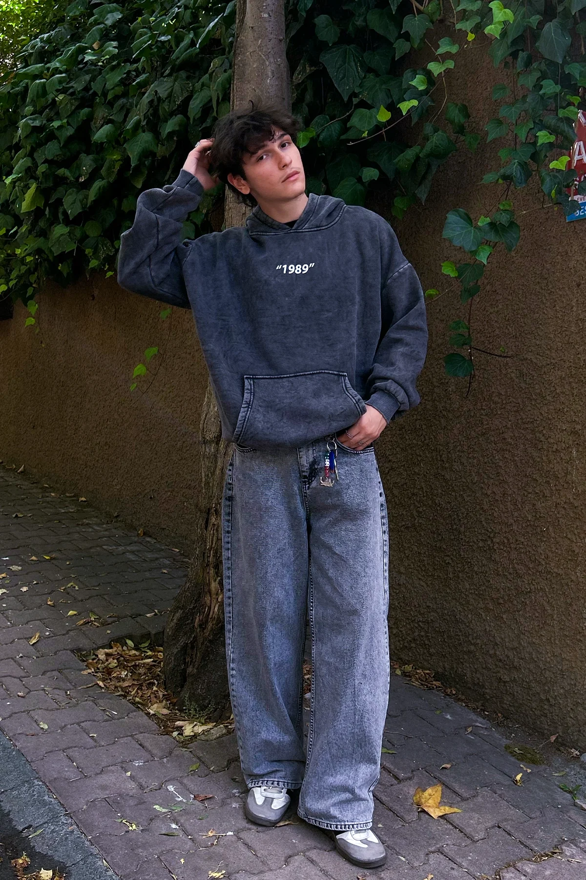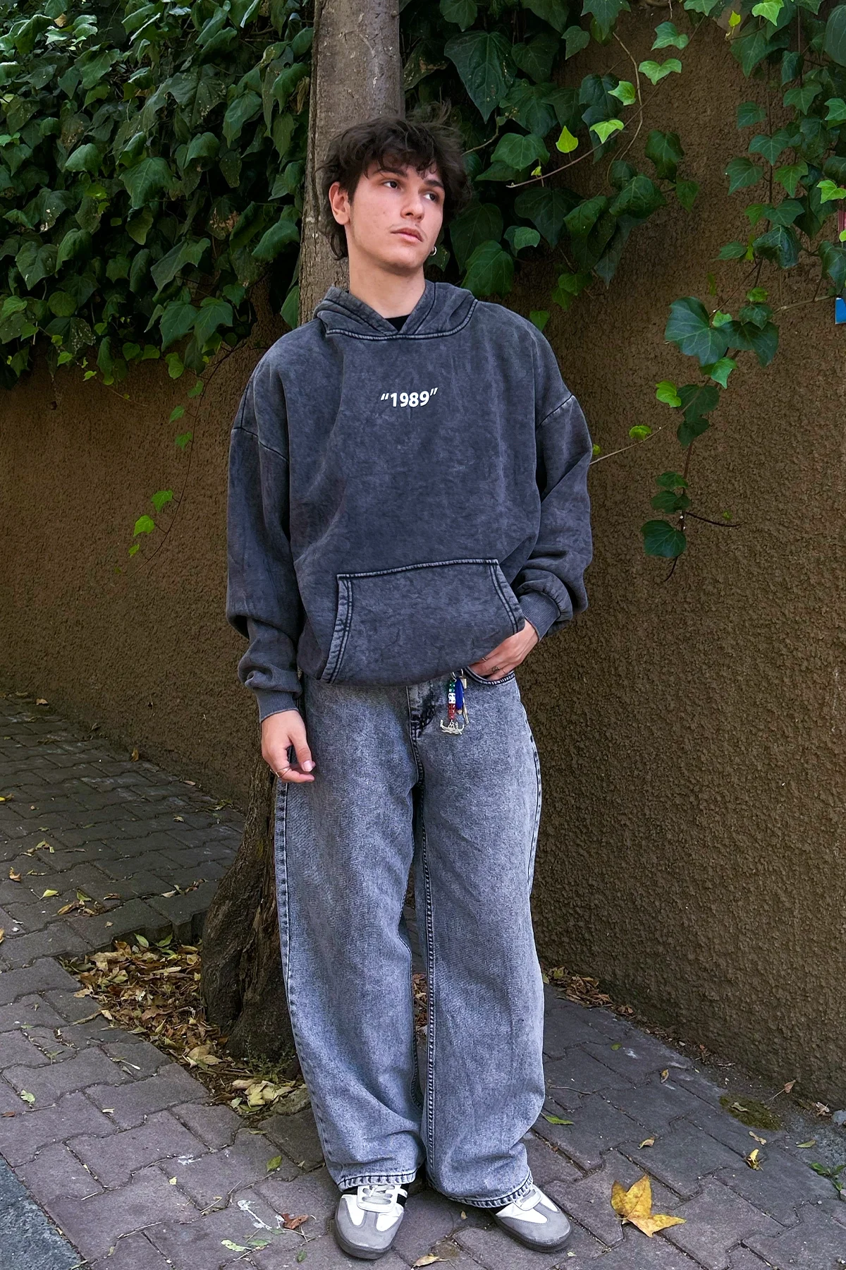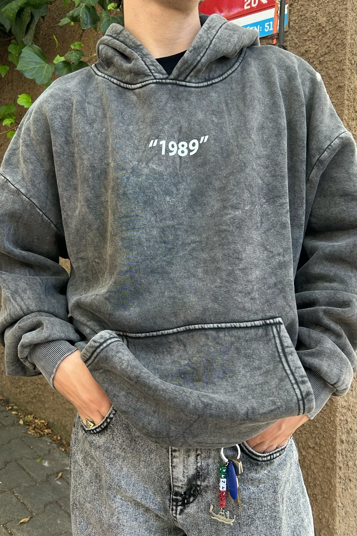 1989 Sırt Baskılı Oversize Unisex Premium Yıkamalı Siyah Hoodie