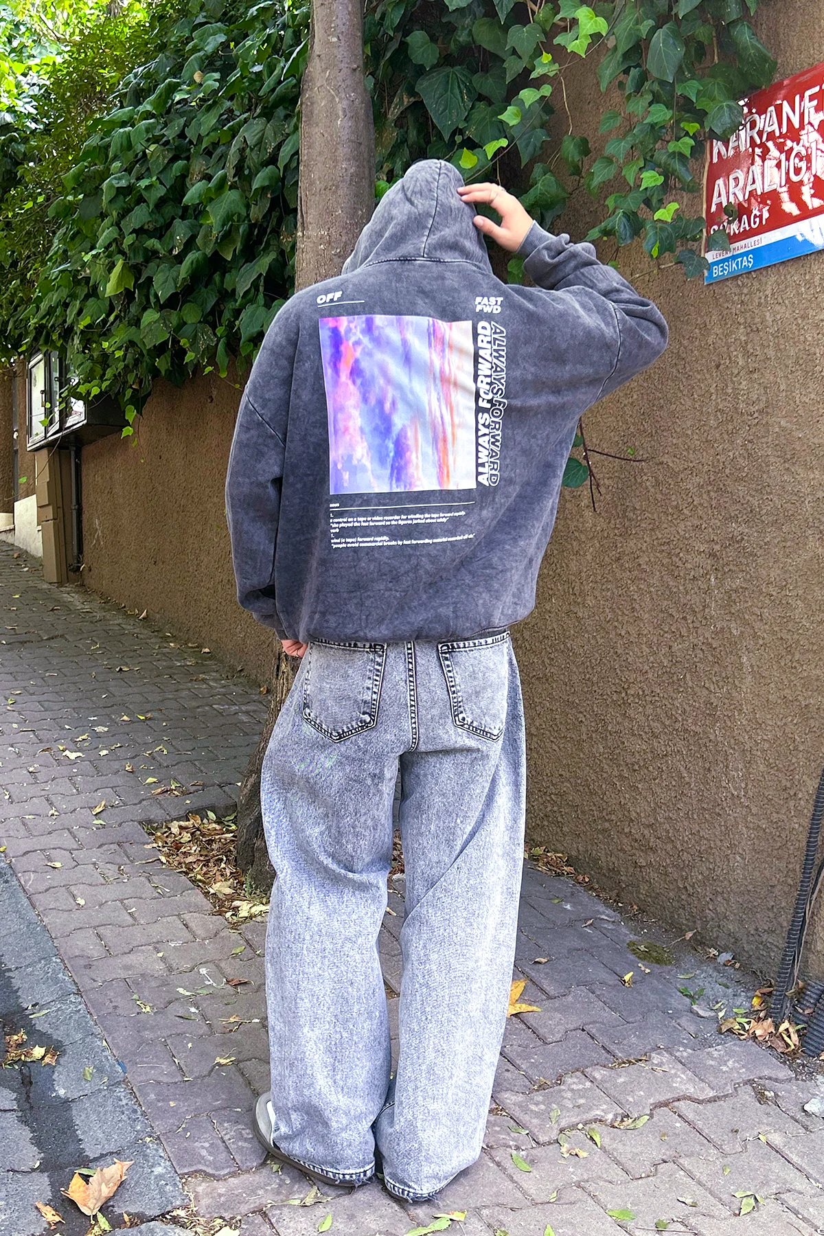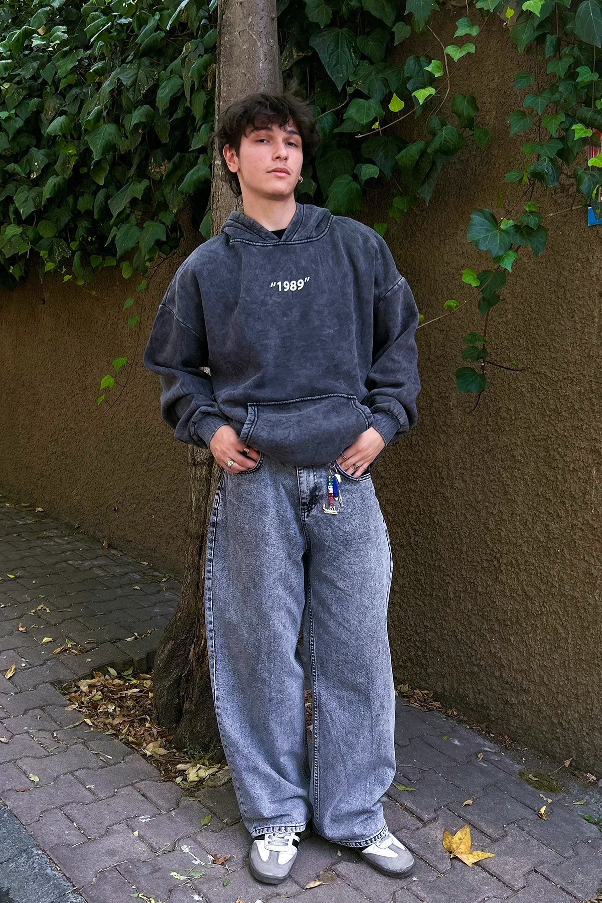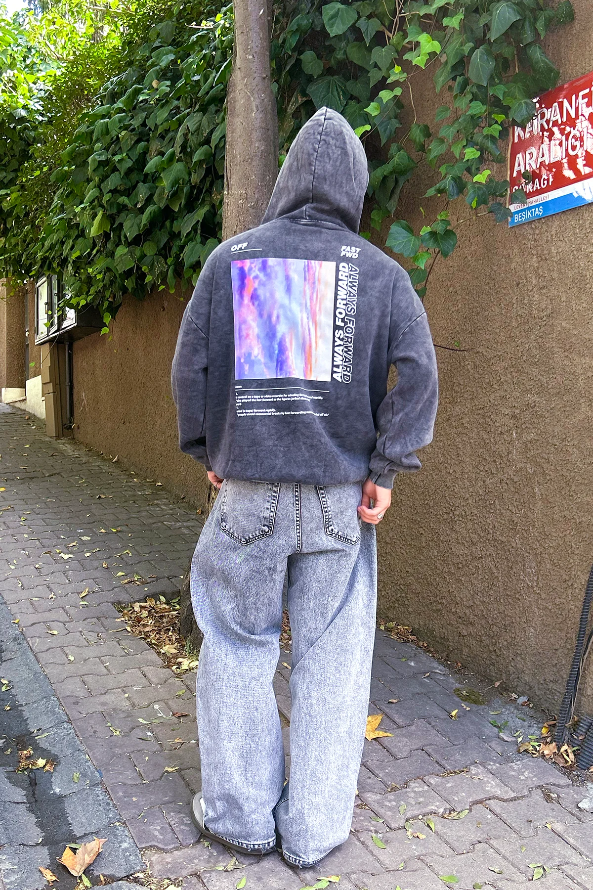 1989 Sırt Baskılı Oversize Unisex Premium Yıkamalı Siyah Hoodie