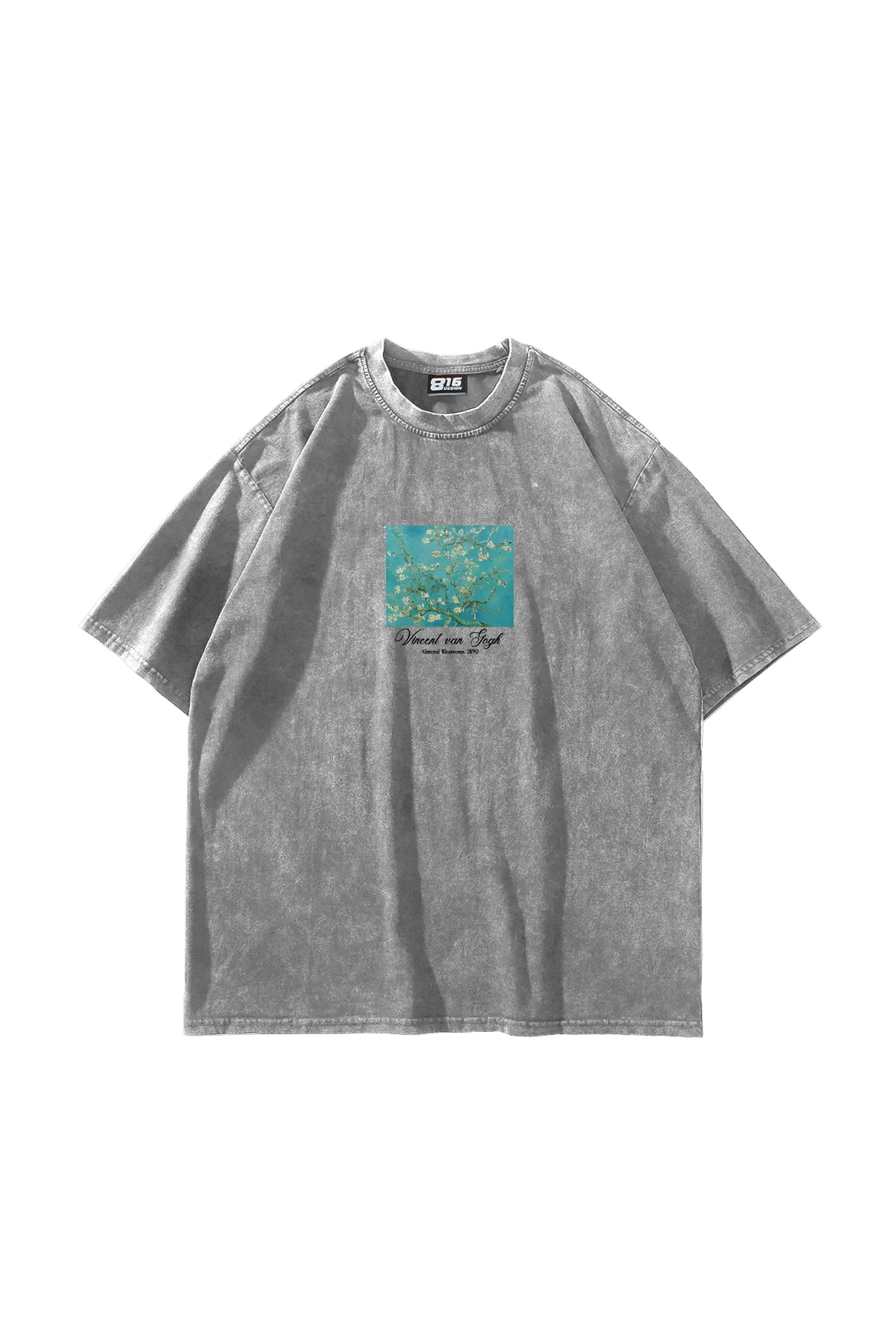 Almond Blossoms Baskılı Oversize Unisex Yıkamalı Beyaz T-Shirt