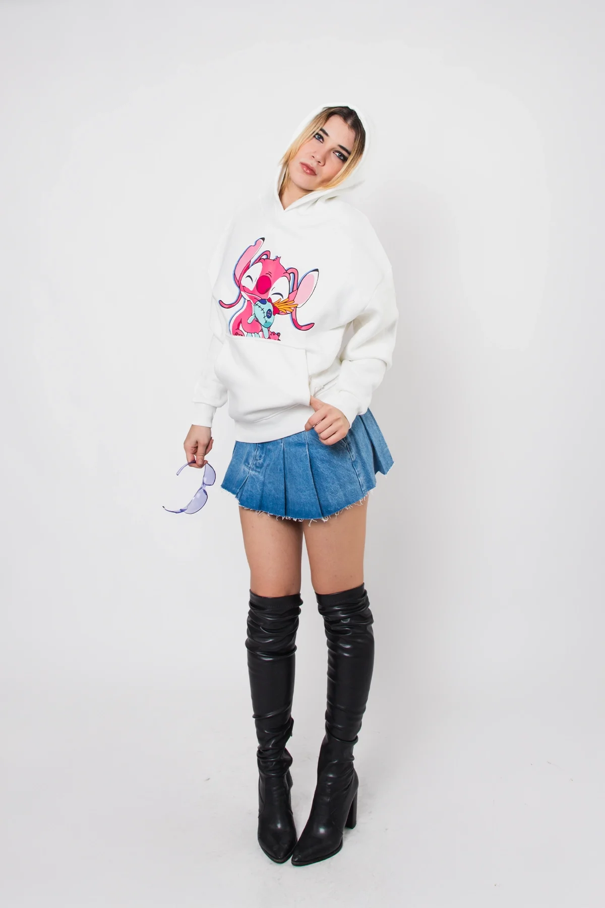 Angel Stitch Baskılı Hoodie, oversize kesimi ve zamansız Beyaz rengiyle hem konforu hem tarzı bir araya getiriyor. Göğüs kısmındaki yazısı ve baskı detayıyla enerjik ve özgün bir görünüm sunar.