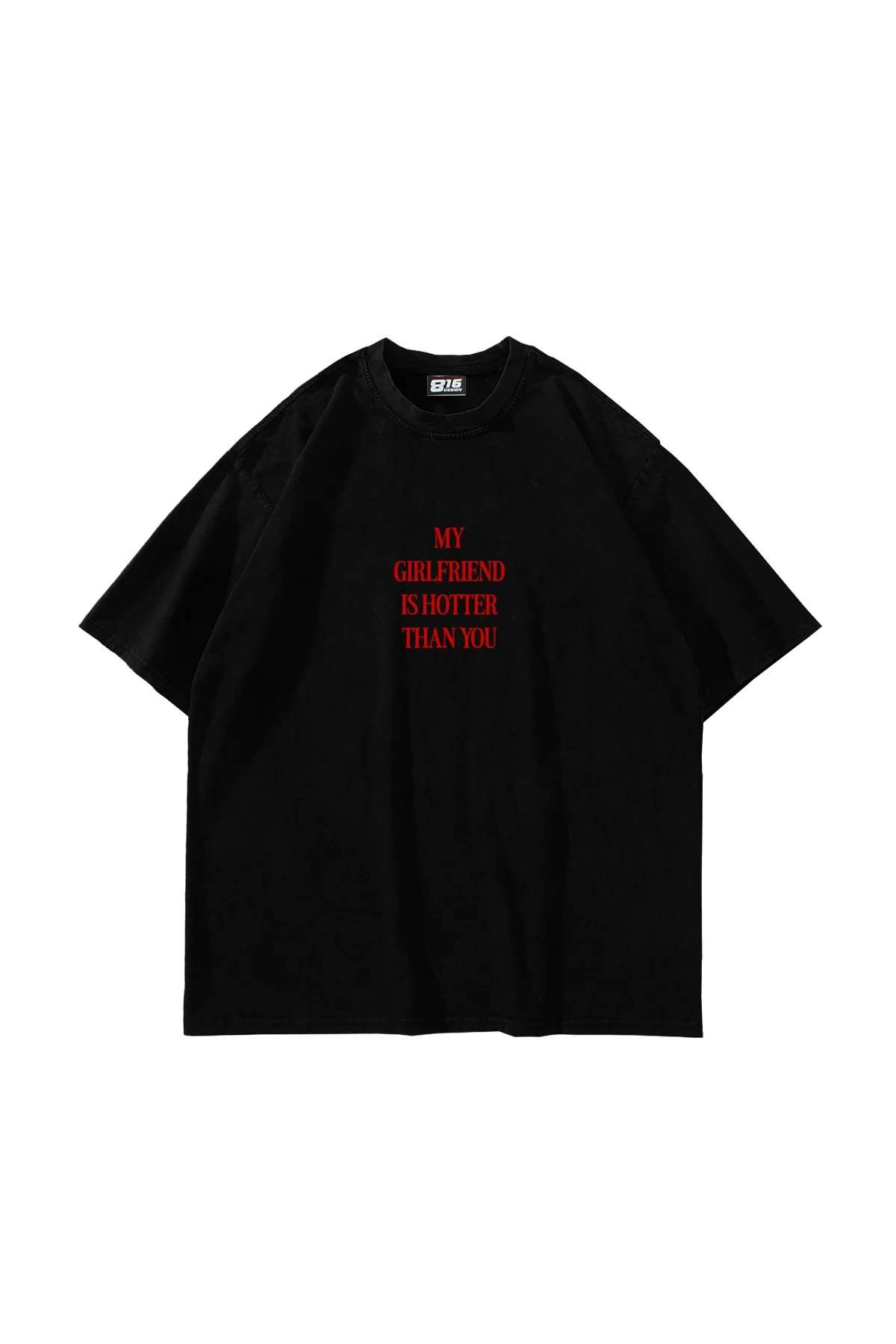 Hot Girlfriend Baskılı Oversize Unisex Siyah T-Shirt