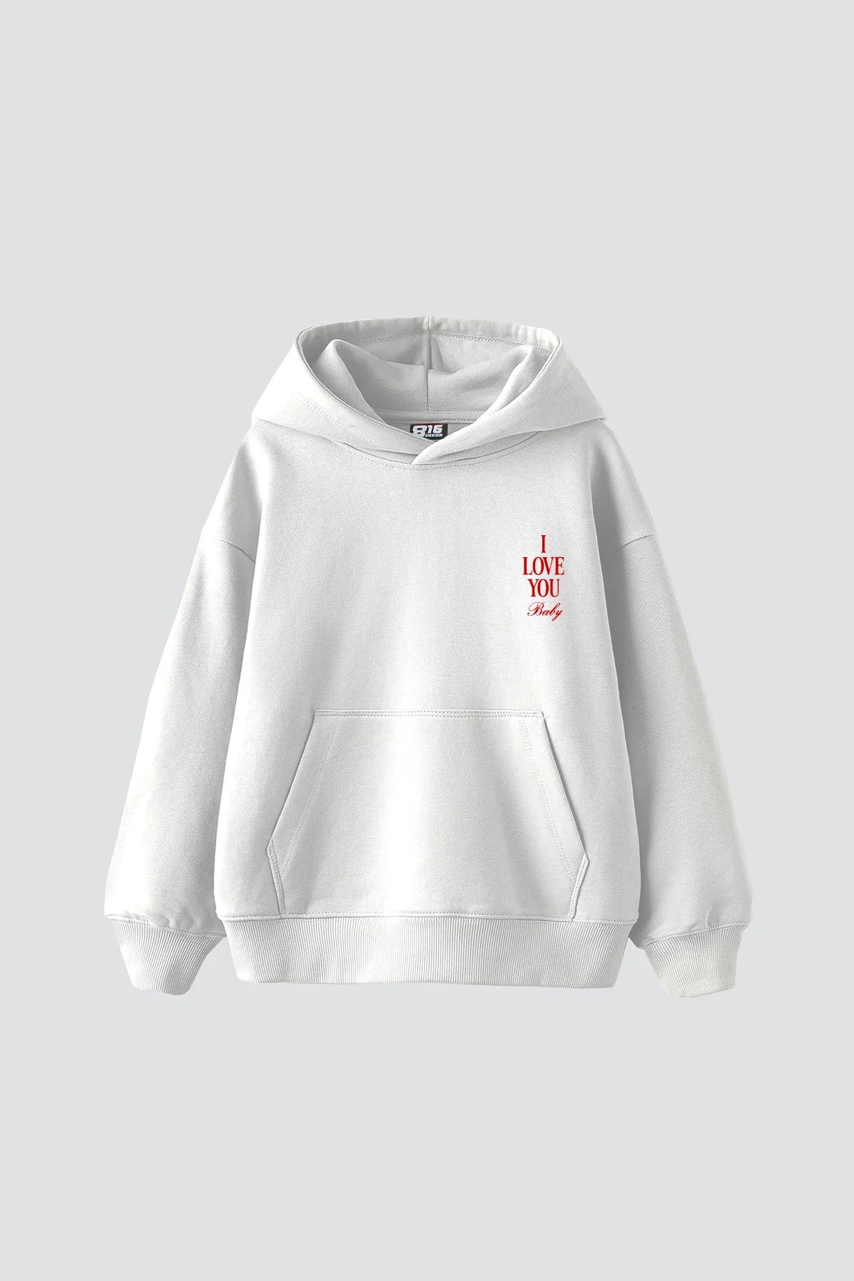 I Love You Baby Baskılı Oversize Unisex Beyaz Hoodie