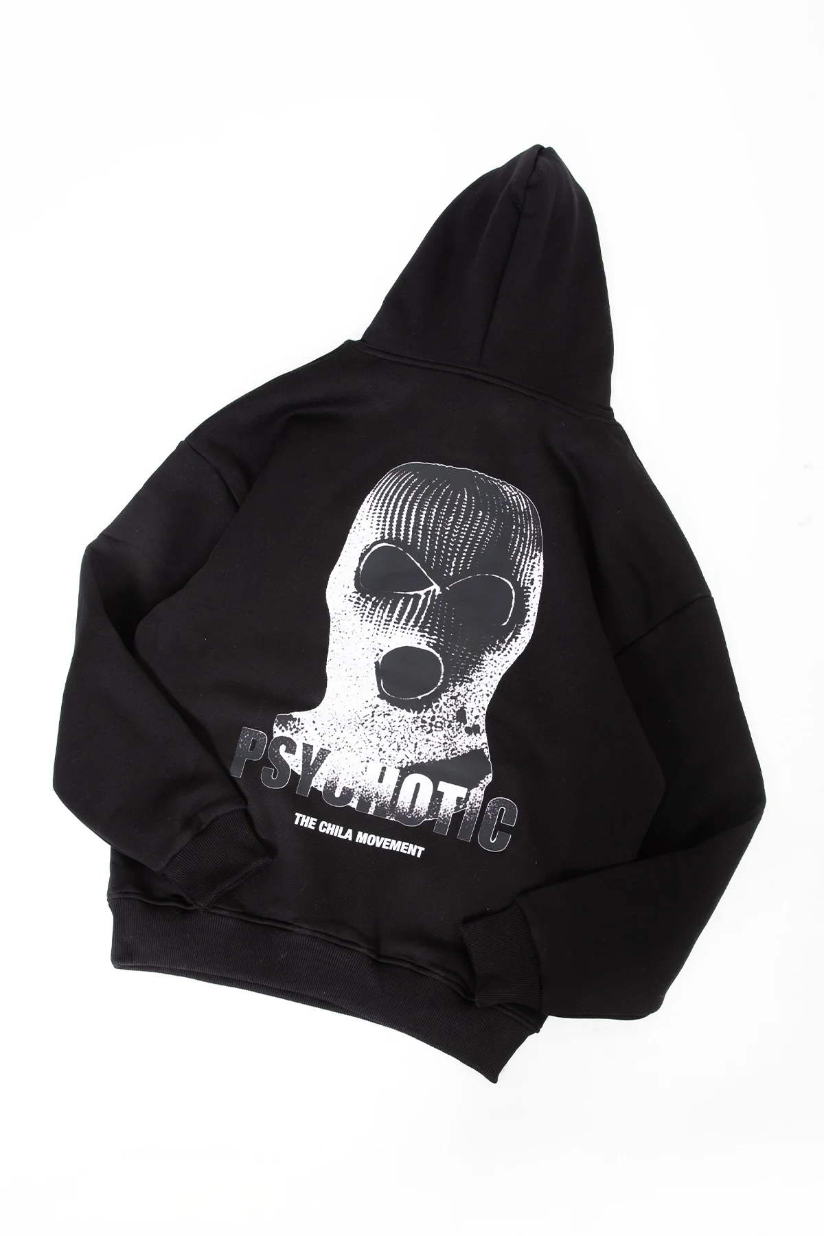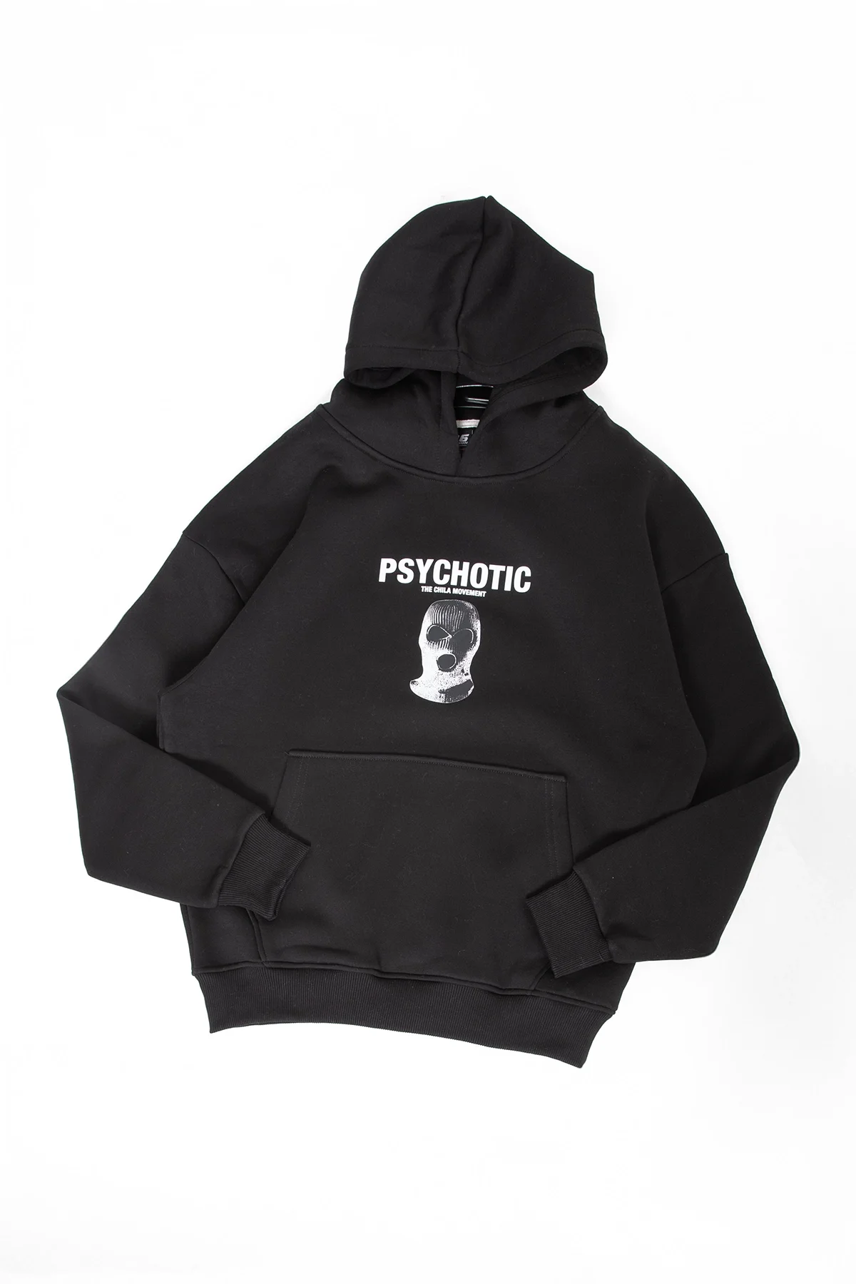 Psychotic Baskılı Hoodie, oversize kesimi ve zamansız Siyah rengiyle hem konforu hem tarzı bir araya getiriyor. Göğüs kısmındaki yazısı ve baskı detayıyla enerjik ve özgün bir görünüm sunar.