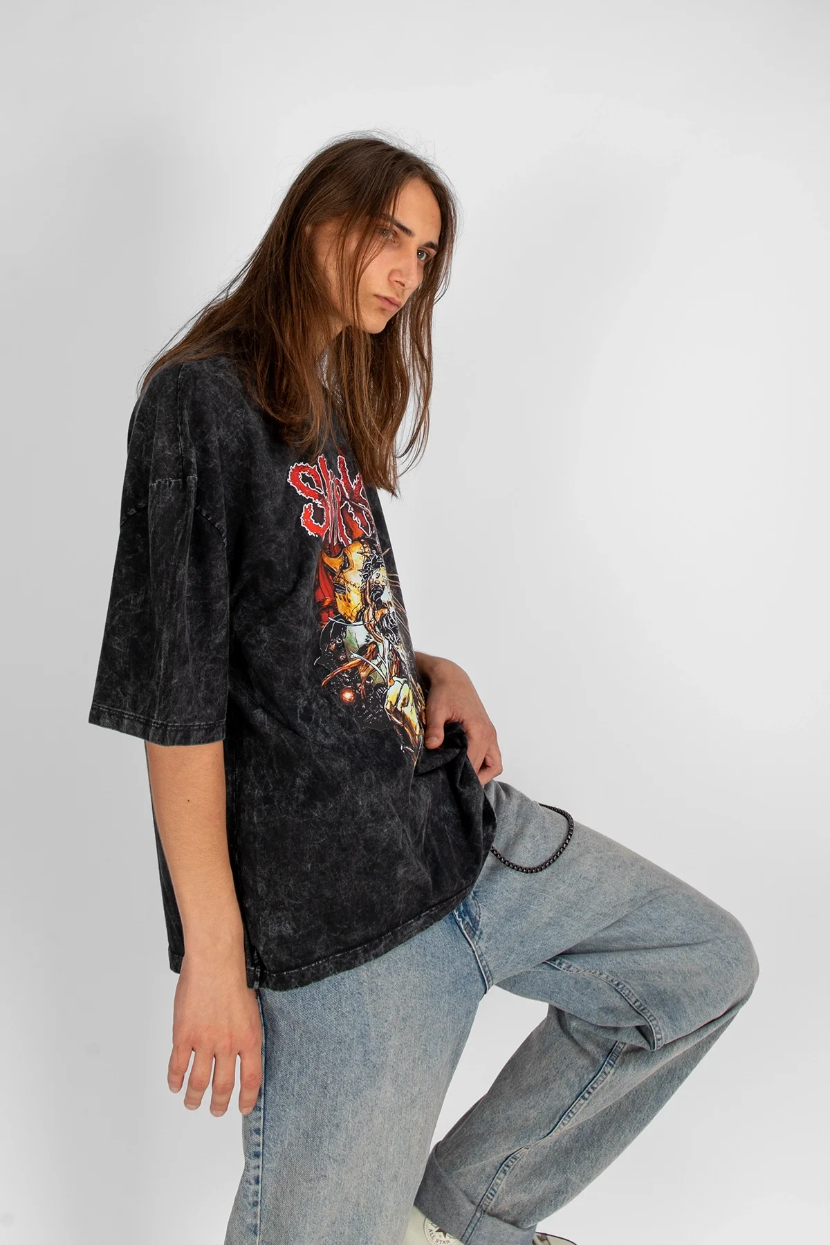 Slipknot Zombie Baskılı Yıkamalı Oversize Unisex Tshirt