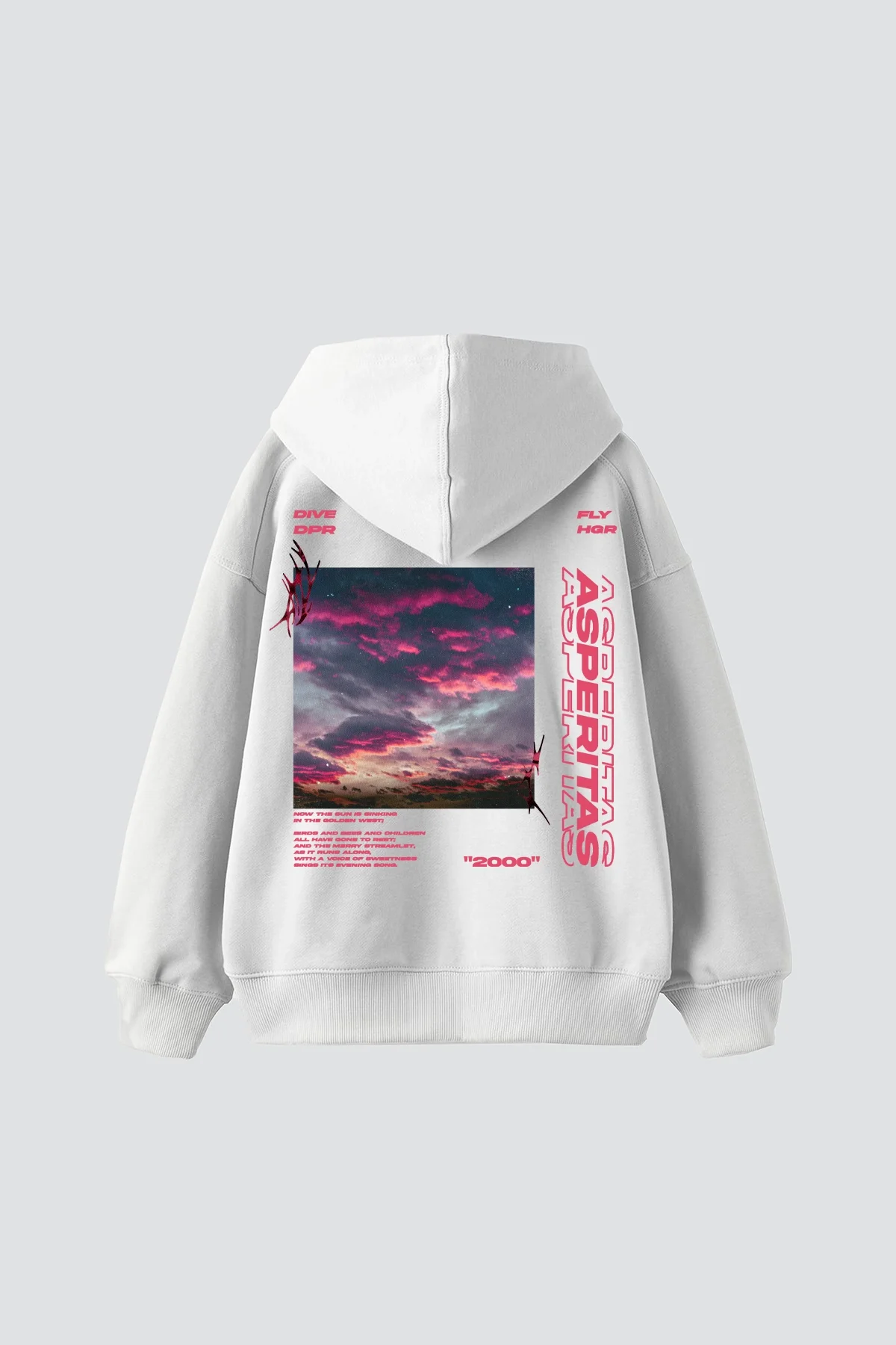 Asperitas Sırt Baskılı Oversize Unisex Beyaz Hoodie