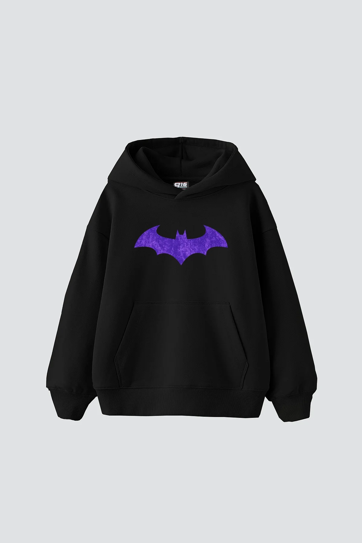 Bat Yarasa Baskılı Oversize Unisex Siyah Hoodie