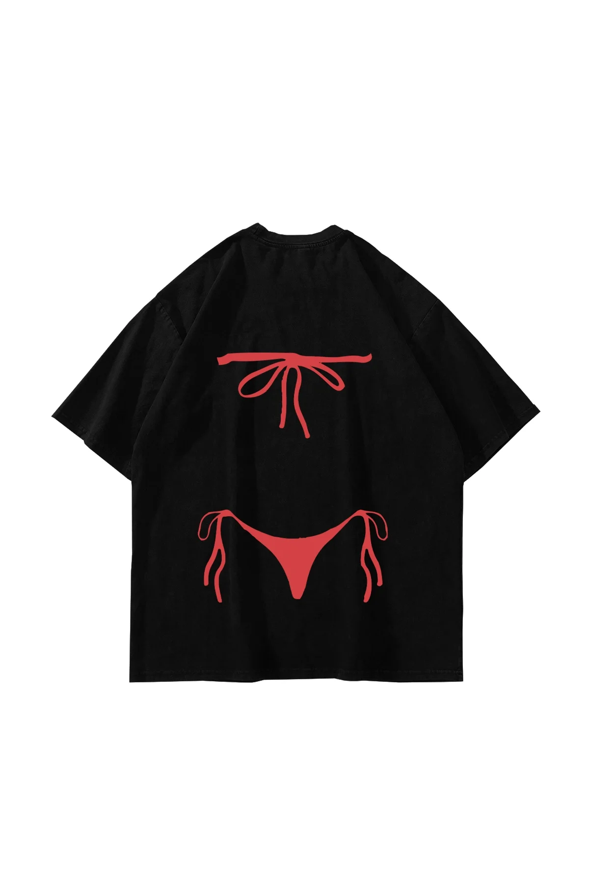 Bikini Fun Baskılı Oversize Unisex Siyah T-Shirt