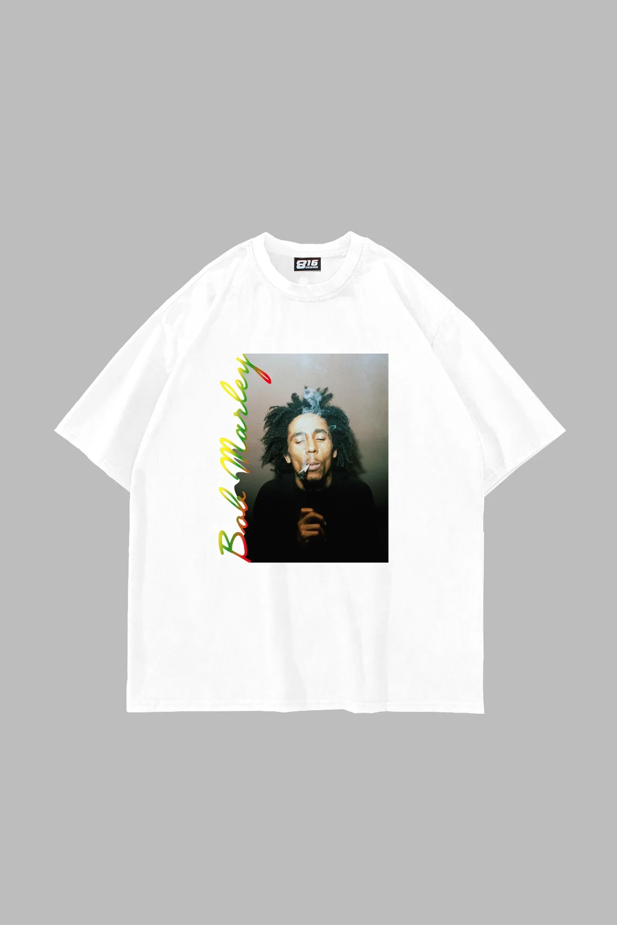 Bob Marley Baskılı Oversize Unisex Beyaz Tshirt