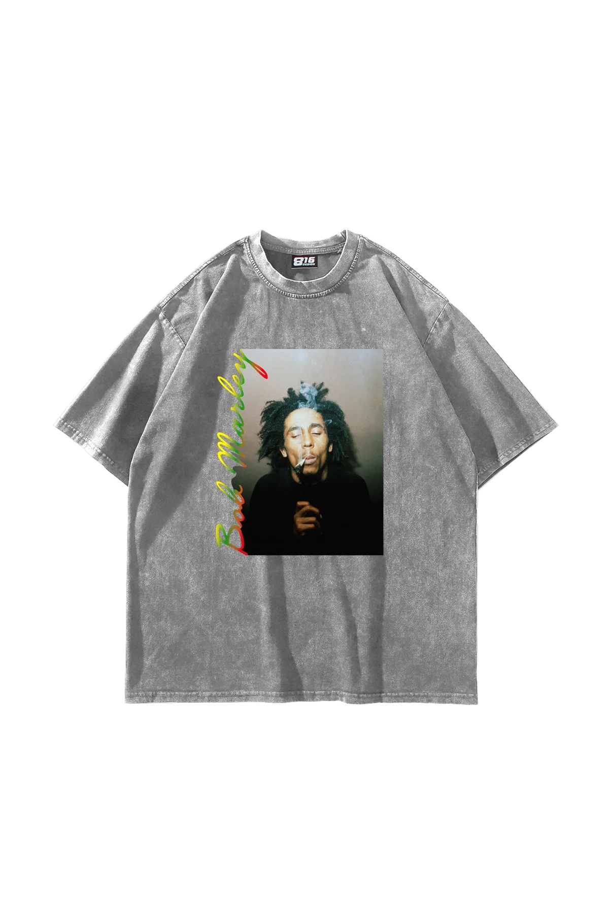 Bob Marley Baskılı Oversize Unisex Yıkamalı Beyaz Tshirt