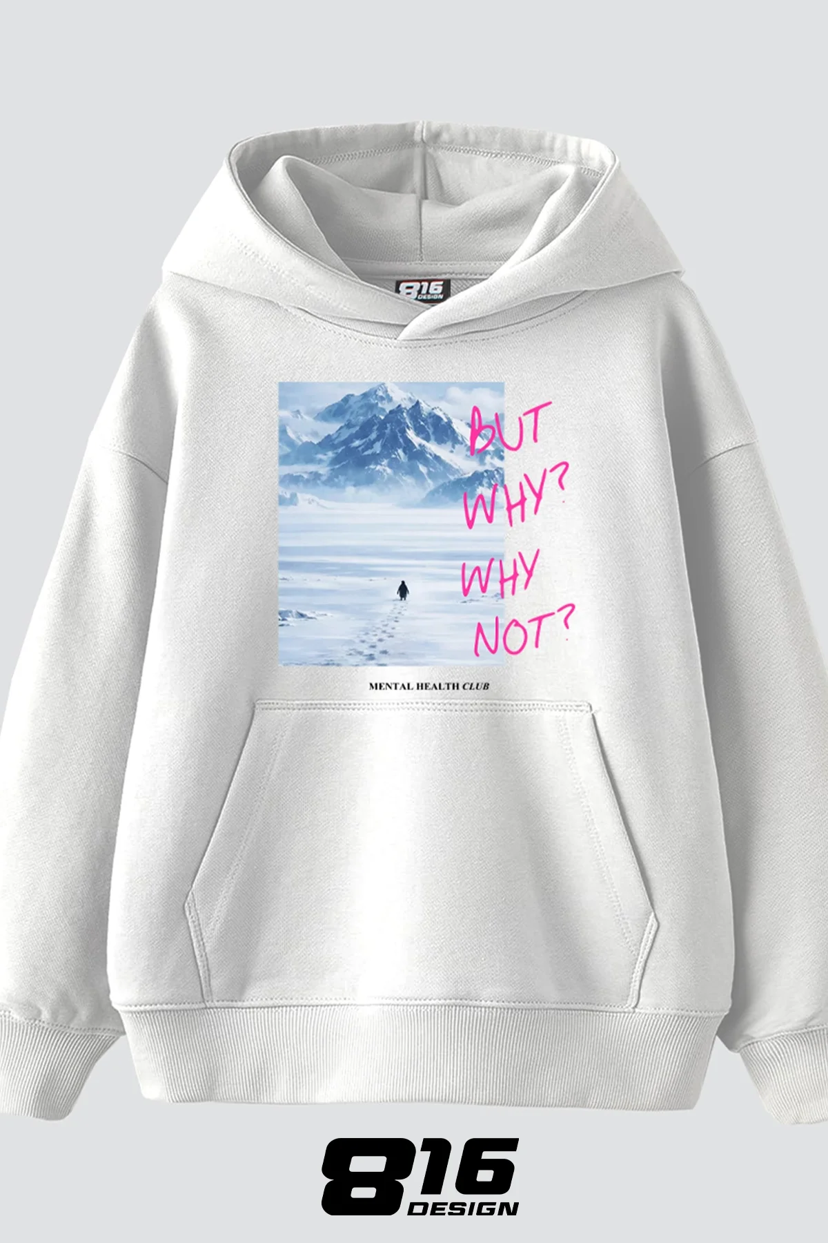 But Why Baskılı Oversize Unisex Beyaz Hoodie