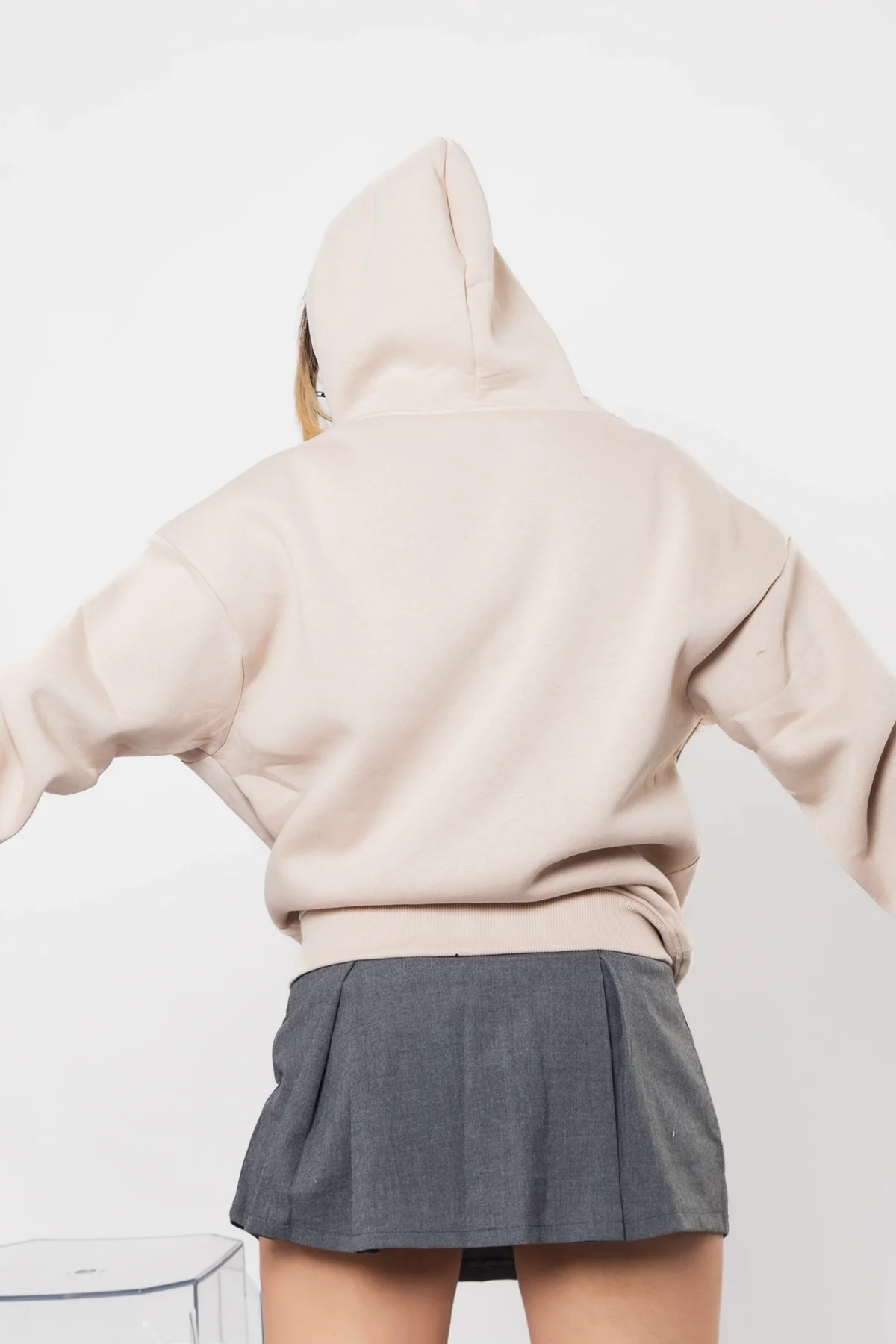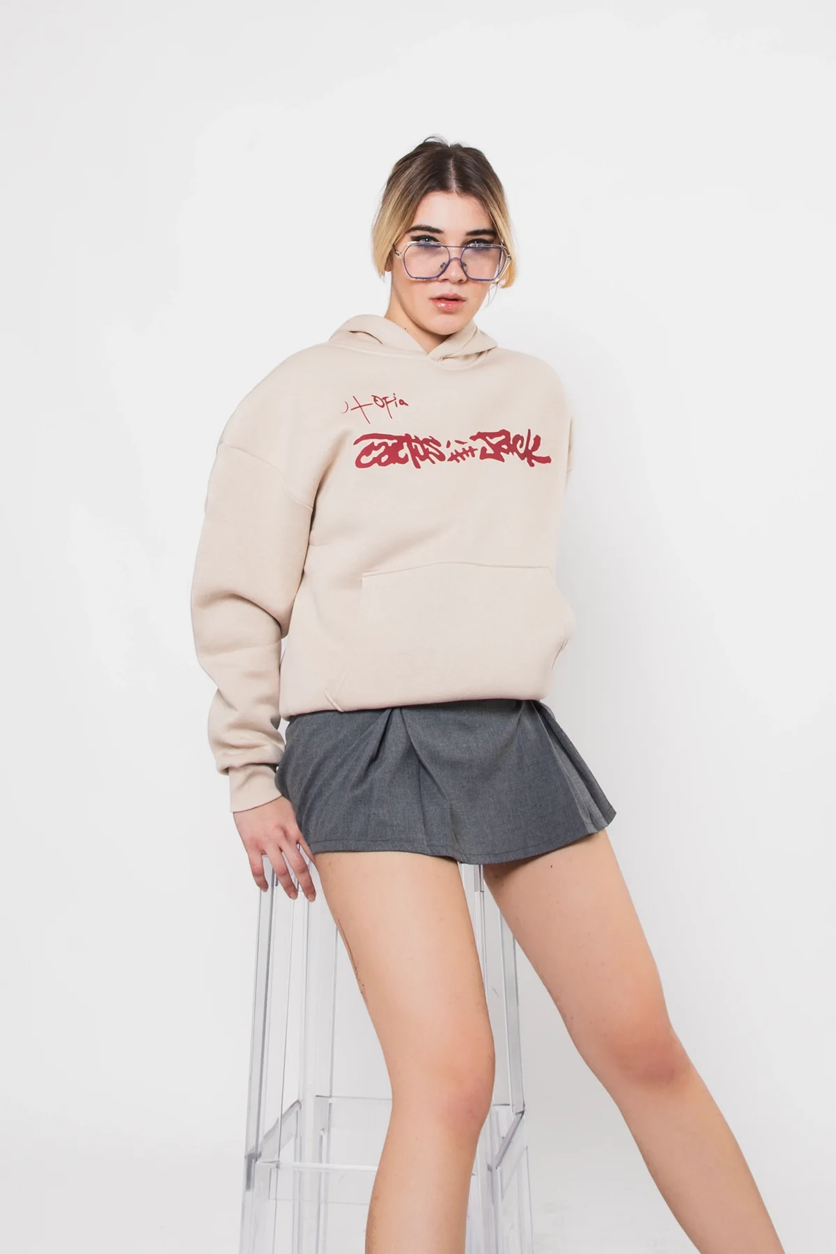Utopia Cactus Jack Baskılı Oversize Unisex Bej Hoodie