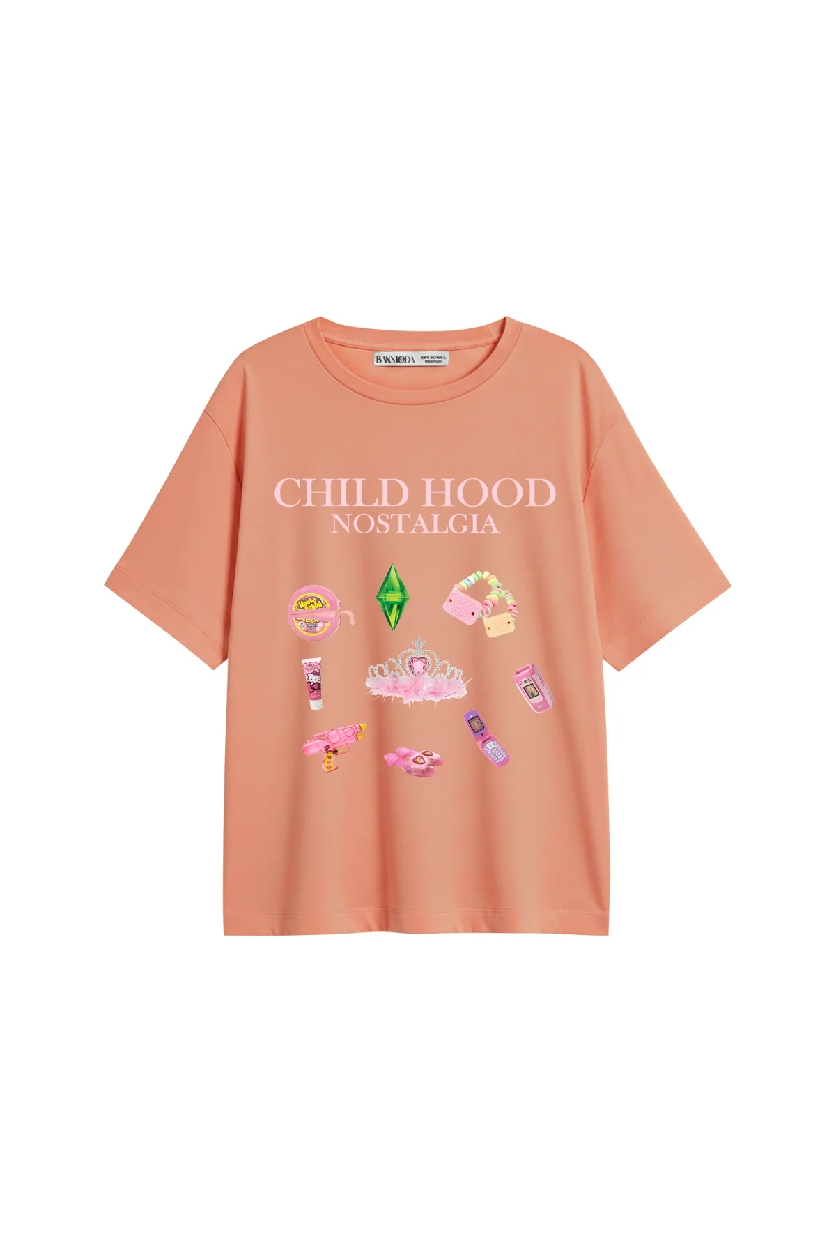 Geçmişin sıcak anılarını stiline taşı! Childhood Nostalgia baskılı relaxed fit Yavruağzı kadın t-shirt, hem nostaljik hem de modern bir dokunuş sunarak zamansız bir görünüm yaratıyor. Minimal ama duygusal tasarımıyla, t-shirt üzerindeki baskı çocukluk günlerinin masumiyetini ve keyfini yansıtıyor.