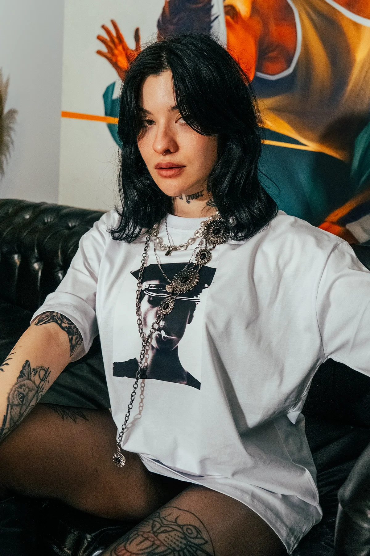 Yumuşak pamuk kumaşı, gün boyu rahatlık ve ferahlık sağlar. Özel kumaş dokusu ise t-shirt’e kendine özgü bir hava katarken, oversize kesimi vücuda oturmadan özgür bir hareket imkanı sunar Christy Turlington baskısı, sokak modasına asi bir hava katıyor.