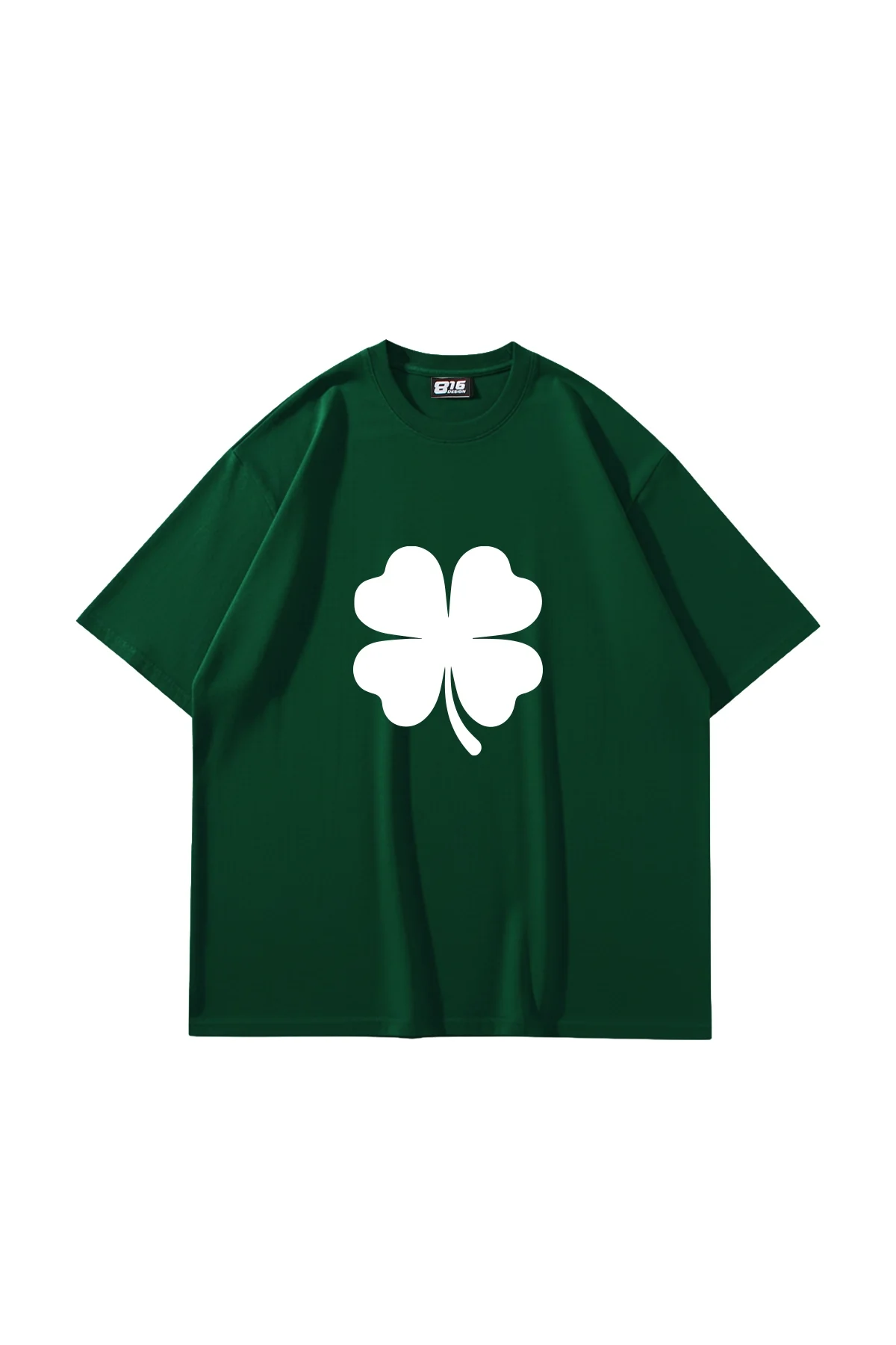 Clover Baskılı Oversize Unisex Yeşil Tshirt