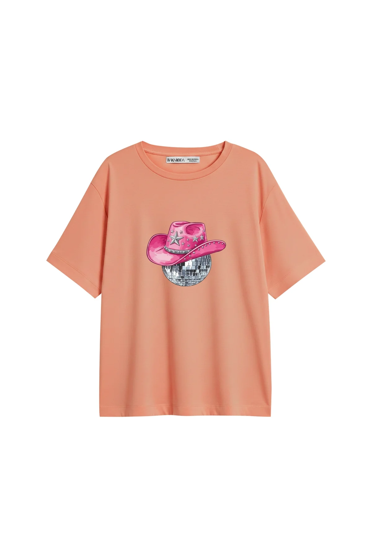 Cow Girl Baskılı Relaxed Fit Yavruağzı Kadın T-Shirt