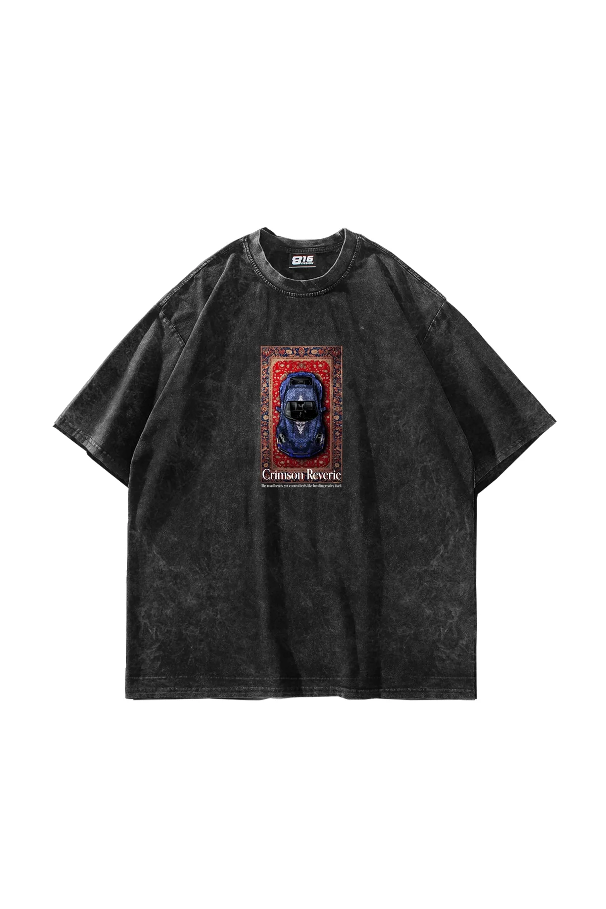Crimson Reverie Baskılı Oversize Unisex Yıkamalı Siyah Tshirt