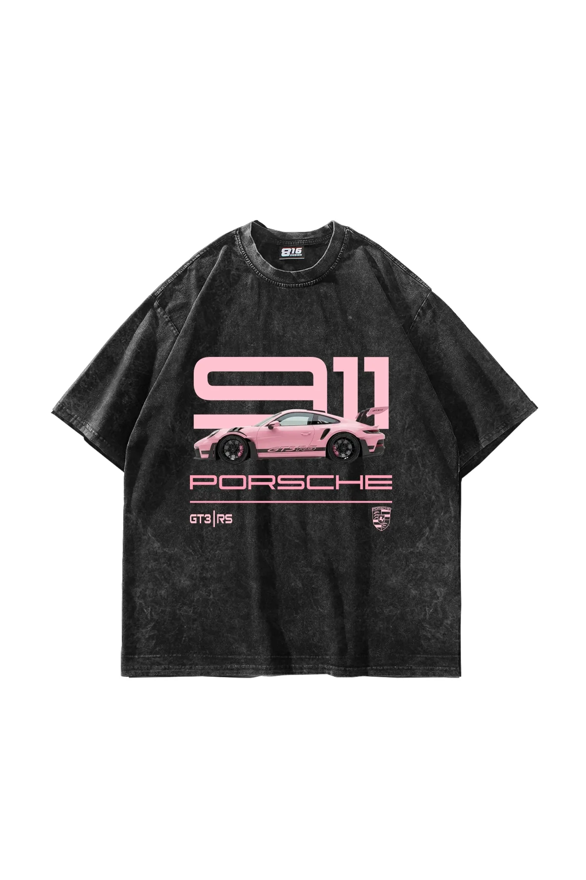 911 Pink Baskılı Oversize Unisex Yıkamalı Siyah Tshirt