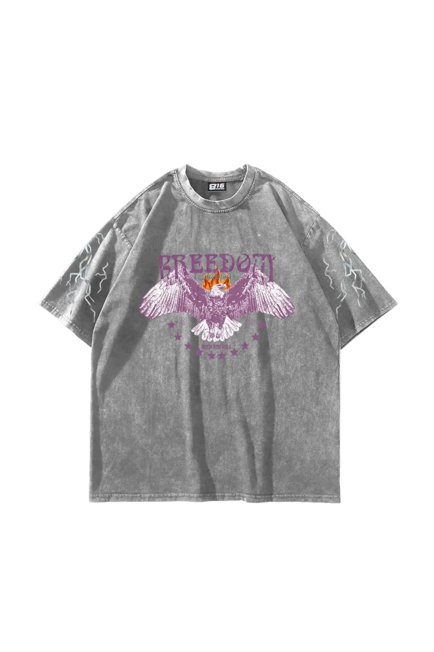 Freedom Rock Tour Baskılı Oversize Unisex Yıkamalı Beyaz Tshirt