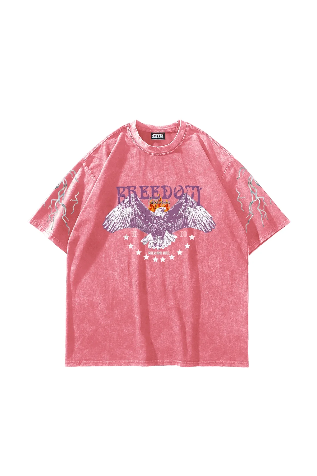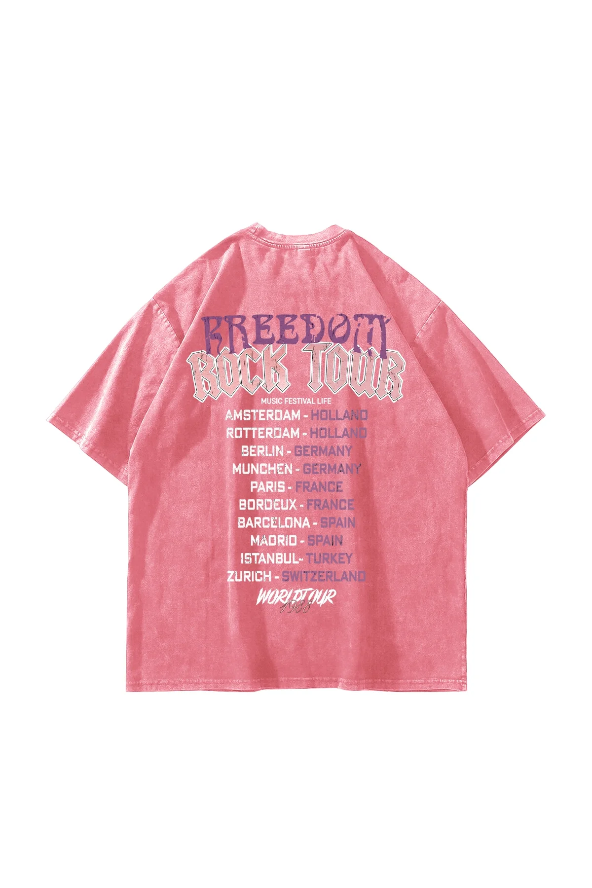 Freedom Rock Tour Baskılı Oversize Unisex Yıkamalı Pembe Tshirt