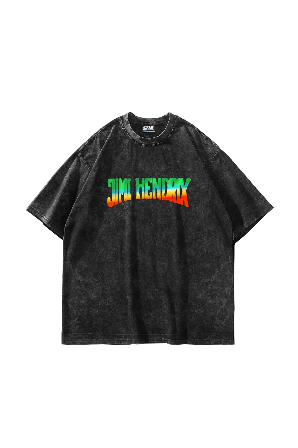 Jimi Hendrix Baskılı Oversize Unisex Yıkamalı Siyah Tshirt