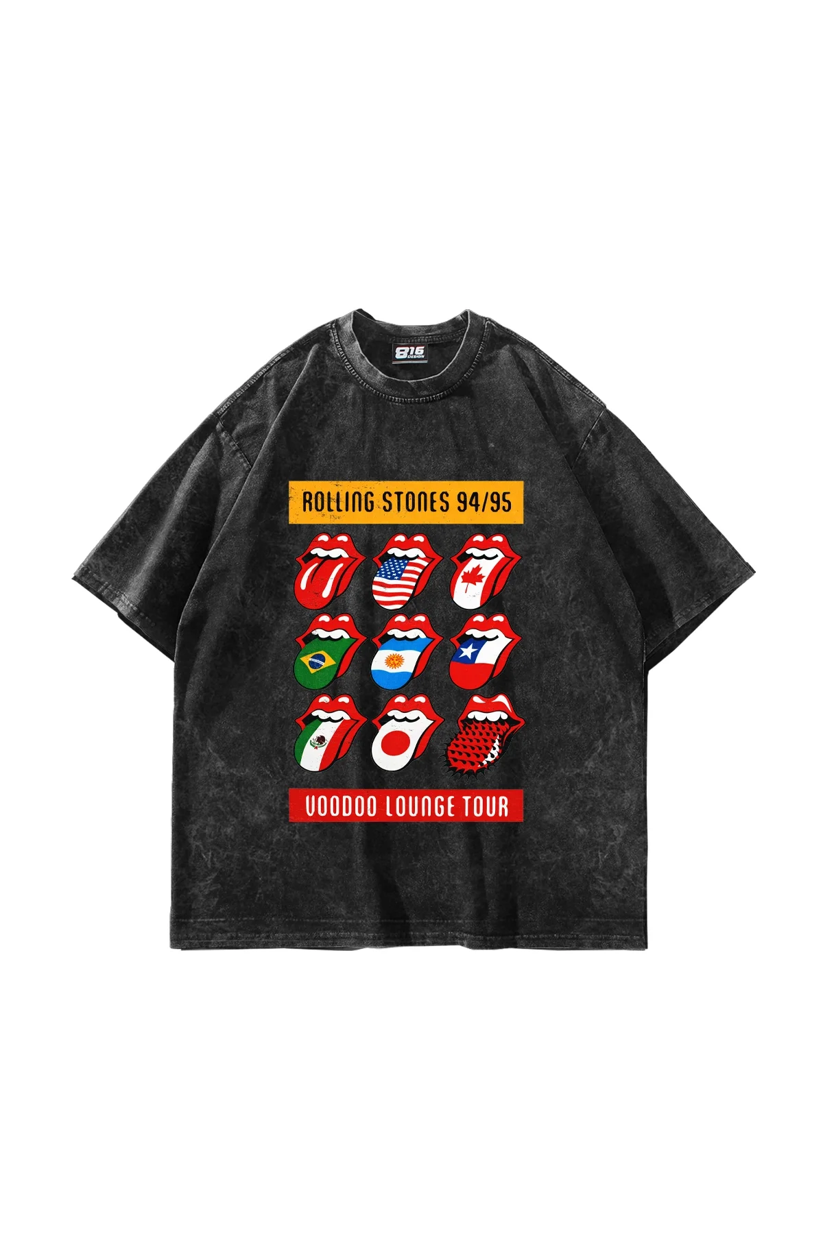 Rolling Stones Tour Baskılı Oversize Unisex Yıkamalı Siyah Tshirt