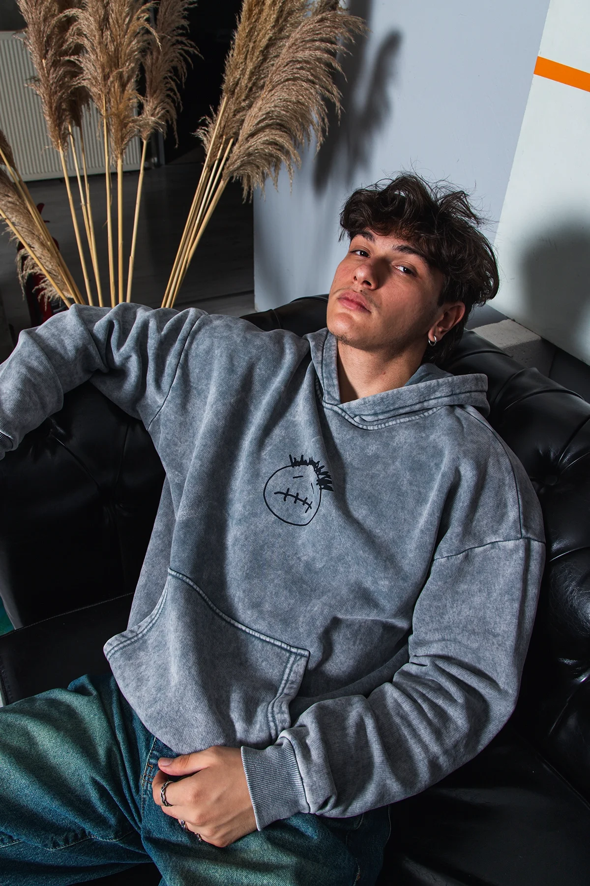 Yıkamalı Beyaz Cactus Jack Sırt Baskılı Oversize Unisex Hoodie
