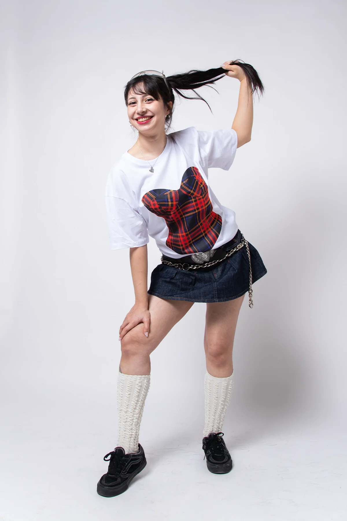 Günlük stilinize enerjik Ekose ve eğlenceli bir dokunuş eklemek isteyenler için tasarlandı! Ekose baskılı Beyaz kadın t-shirt, rahat kalıbı ve yumuşak pamuklu kumaşıyla gün boyu konfor sağlarken, minimal ve dikkat çekici tasarımıyla tarzınızı yansıtmanıza yardımcı olur.