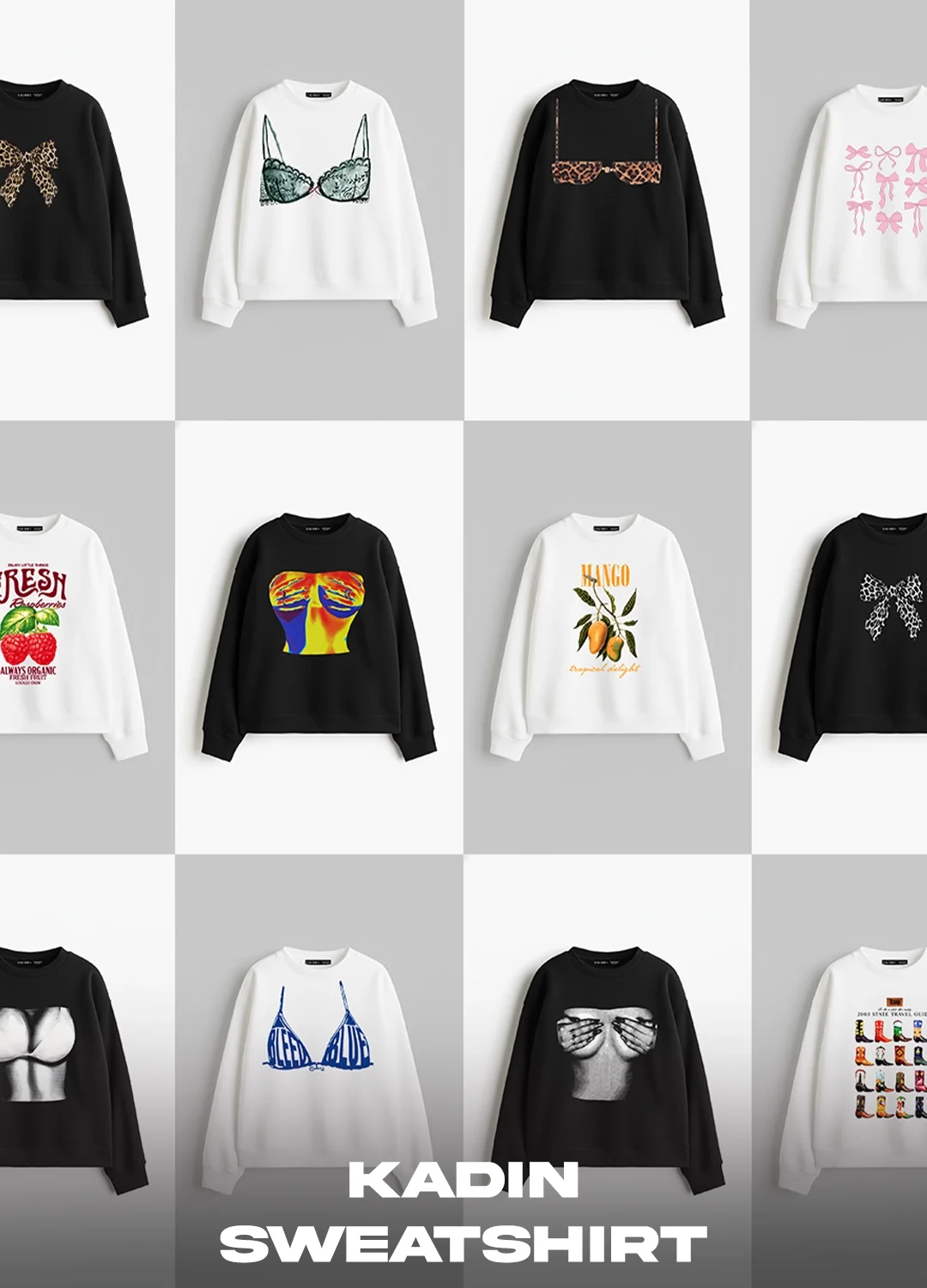 Ibıza Bohemıa Baskılı Kapüşonsuz Relaxed Fit Kadın Siyah Sweatshirt