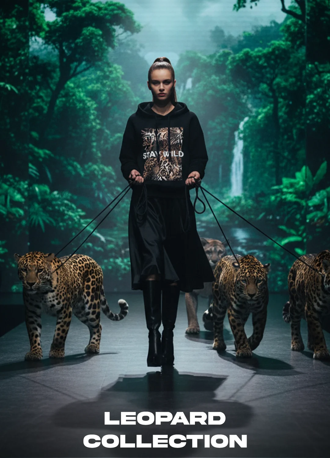 Leopar Starz Baskılı Oversize Unisex Premium Yıkamalı Siyah Hoodie