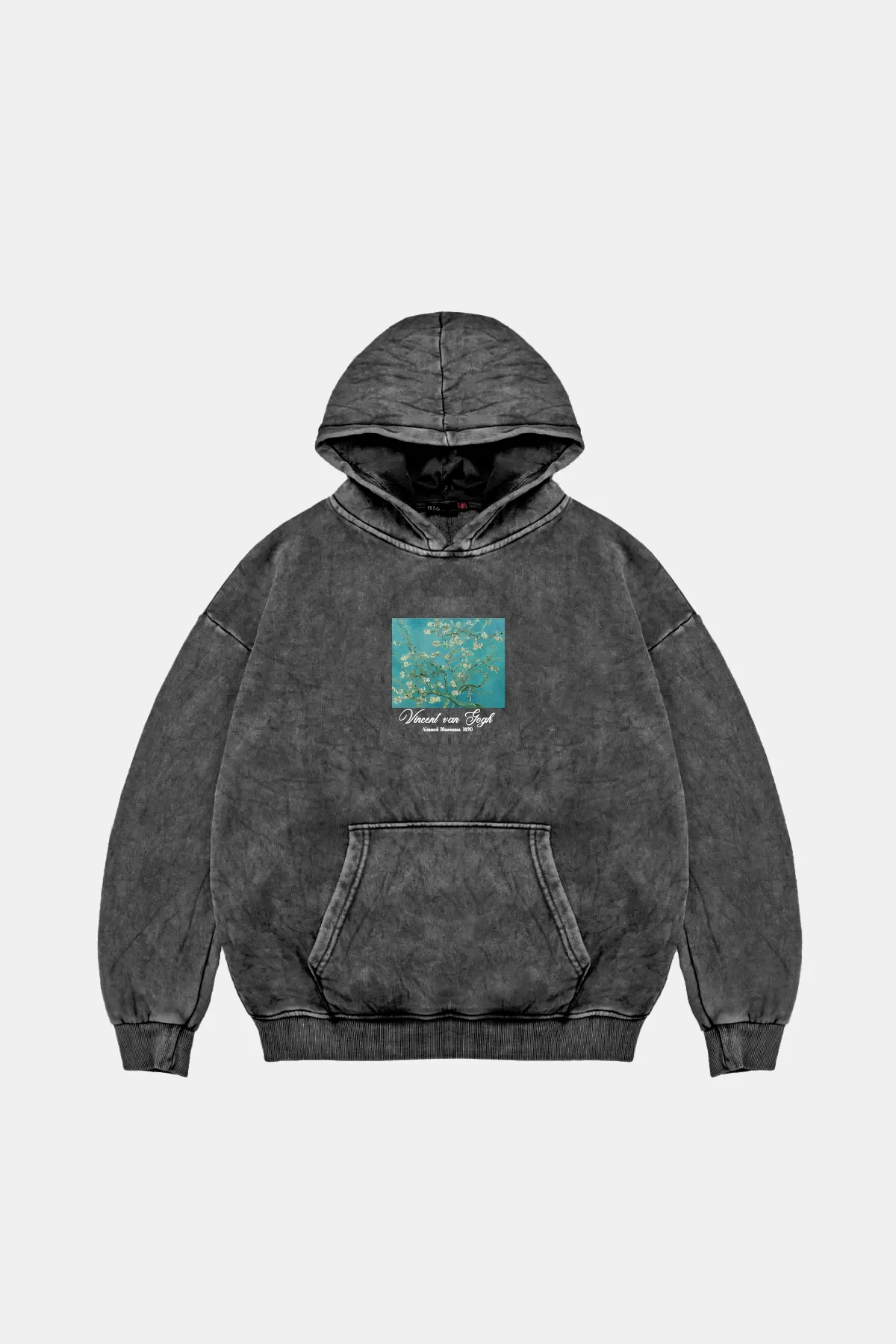 Almond Blossoms Baskılı Oversize Unisex Yıkamalı Siyah Hoodie