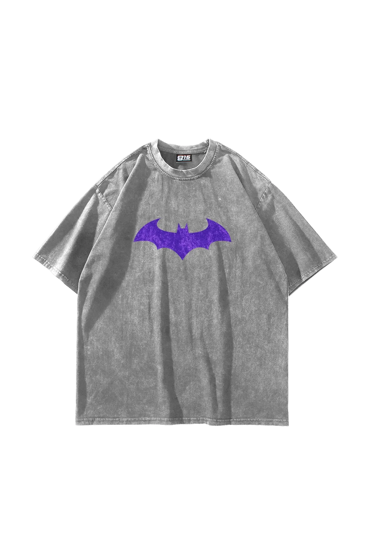 Bat Yarasa Baskılı Oversize Unisex Yıkamalı Beyaz T-Shirt