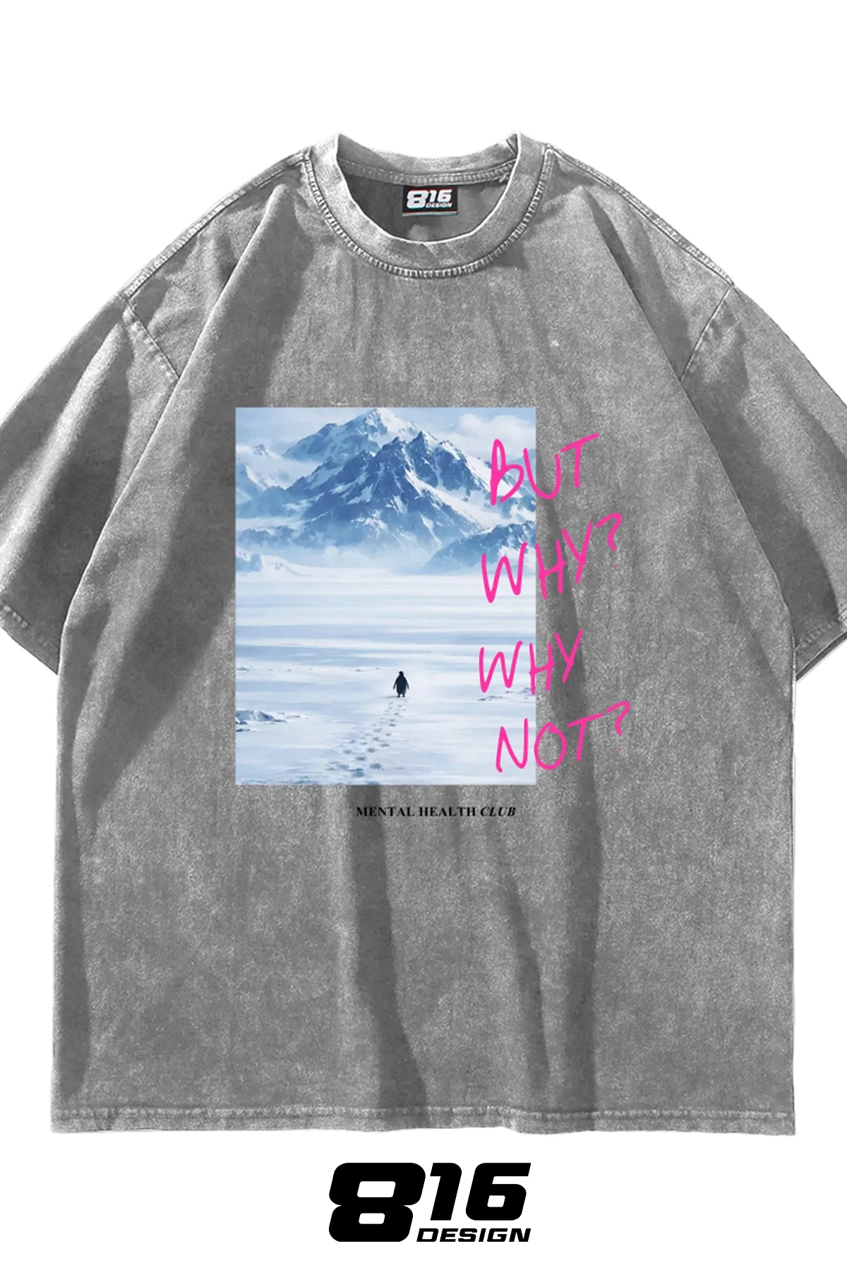 But Why Baskılı Oversize Unisex Yıkamalı Beyaz Tshirt