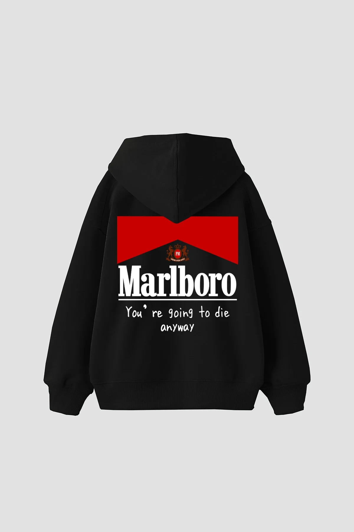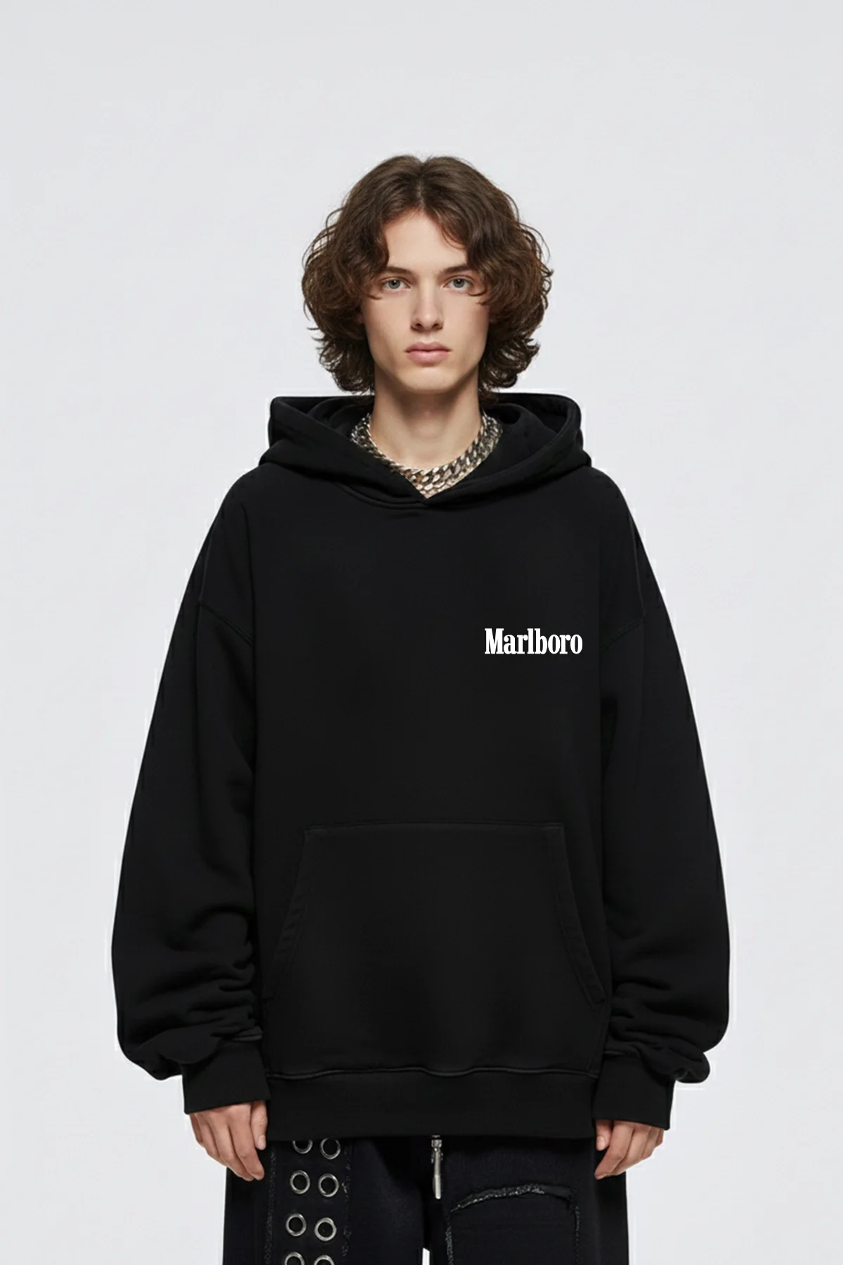 MRL. Baskılı Oversize Unisex Siyah Hoodie