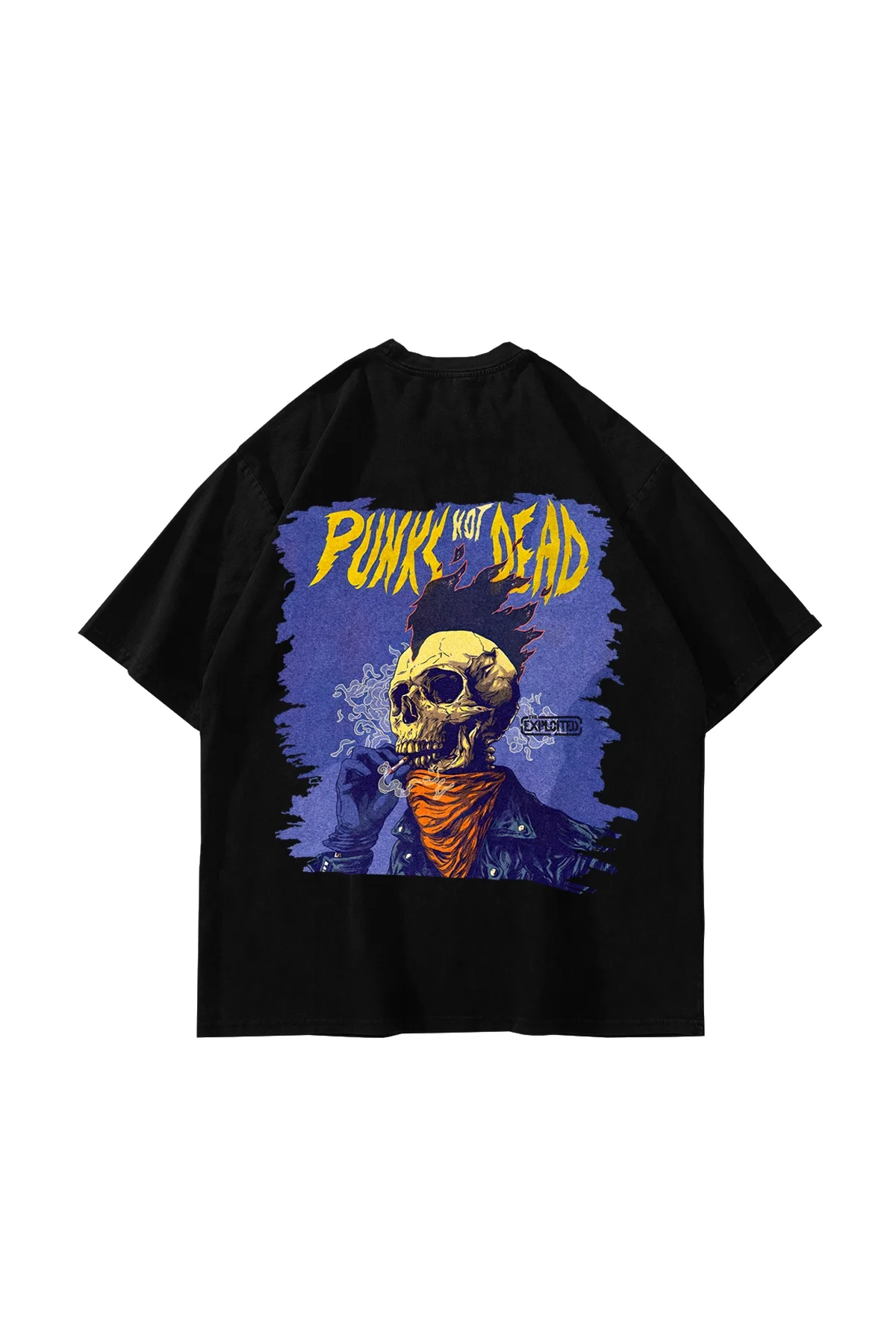 Punks Not Dead Sırt Baskılı Oversize Unisex Siyah Tshirt