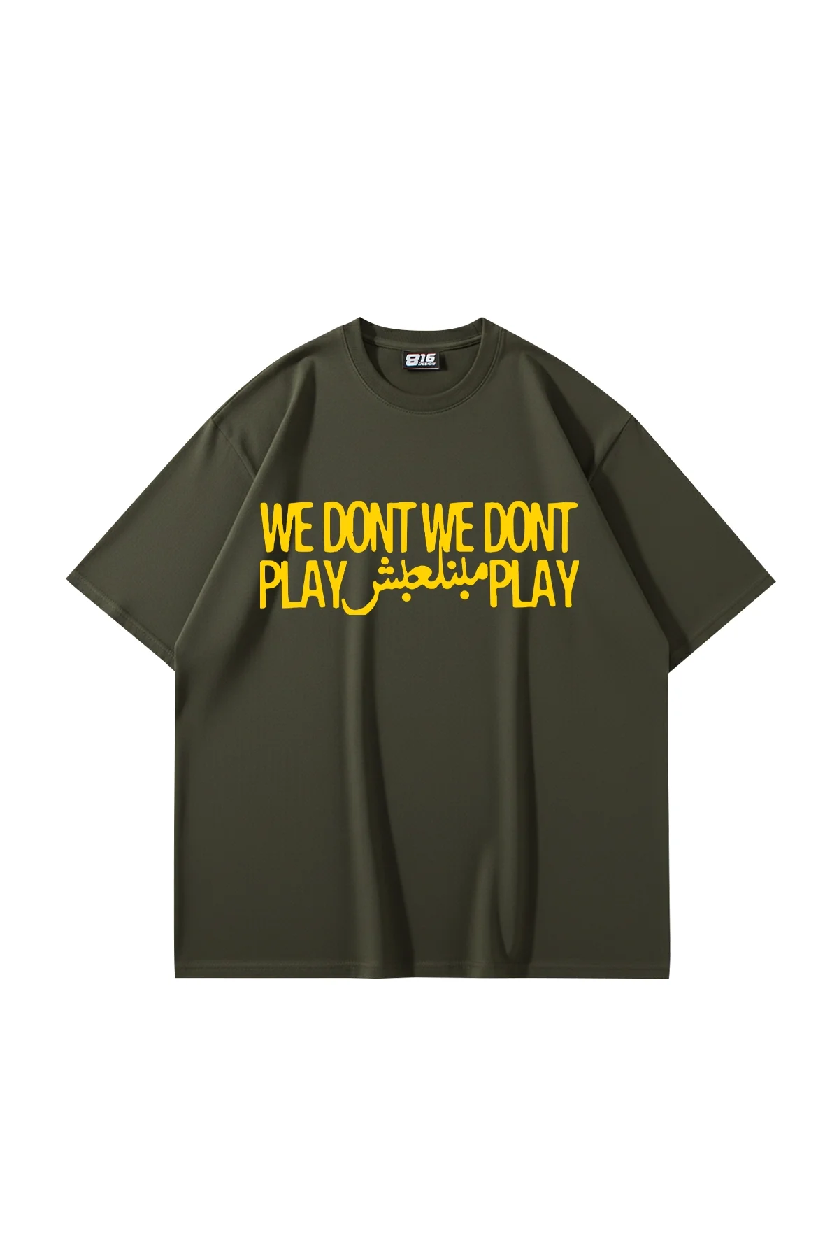 We Dont Play Baskılı Oversize Unisex Haki Tshirt