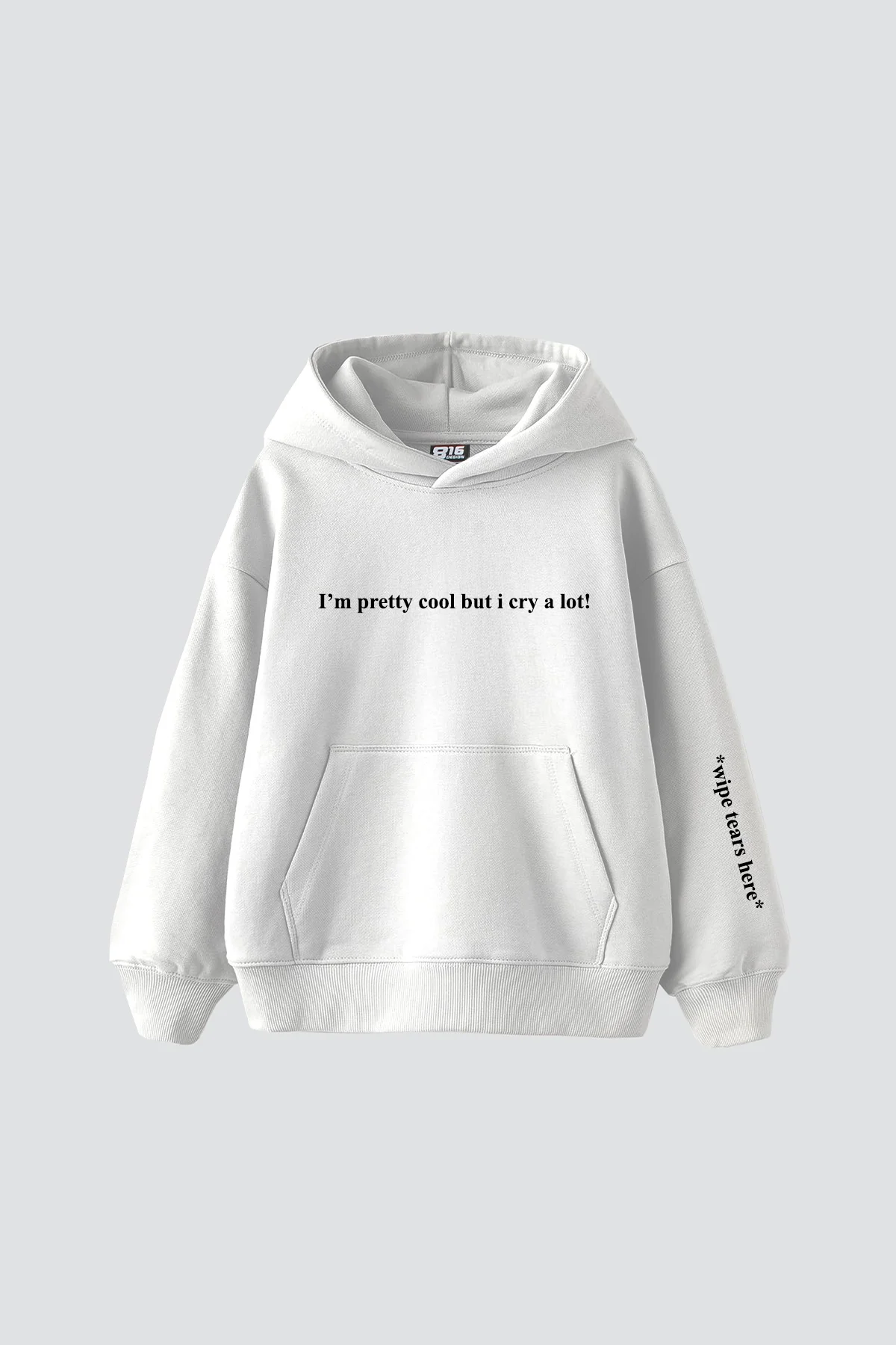 Wipe Tears Here Baskılı Hoodie, oversize kesimi ve zamansız Beyaz rengiyle hem konforu hem tarzı bir araya getiriyor. Göğüs kısmındaki yazısı ve baskı detayıyla enerjik ve özgün bir görünüm sunar.