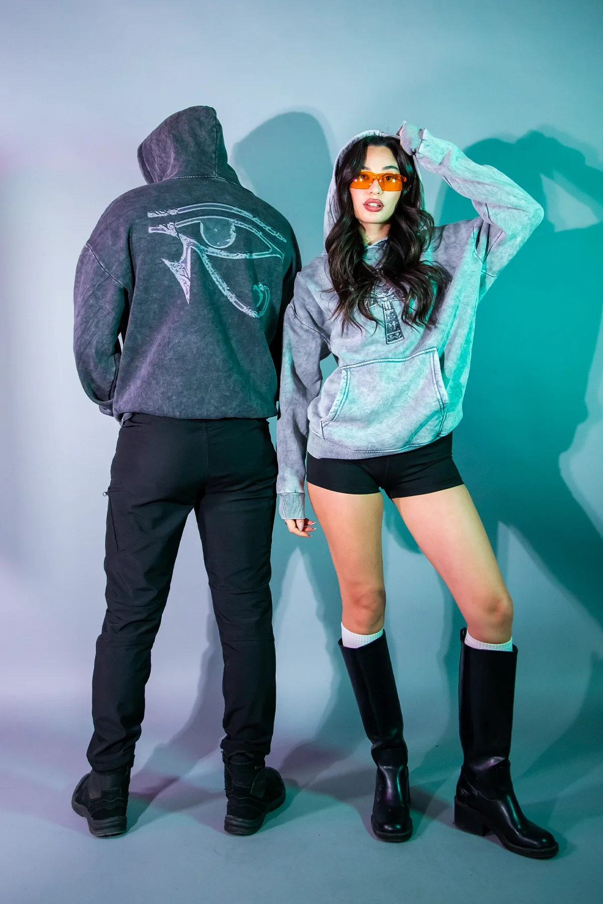 Eye Of Horus Baskılı Oversize Unisex Yıkamalı Siyah Hoodie