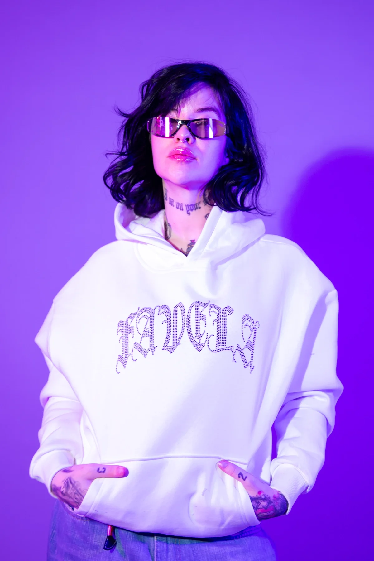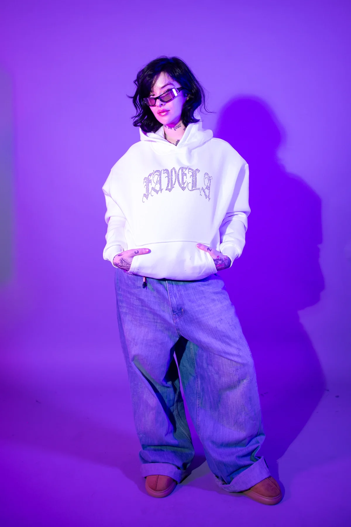 Favela Taş Baskılı Oversize Unisex Beyaz Hoodie