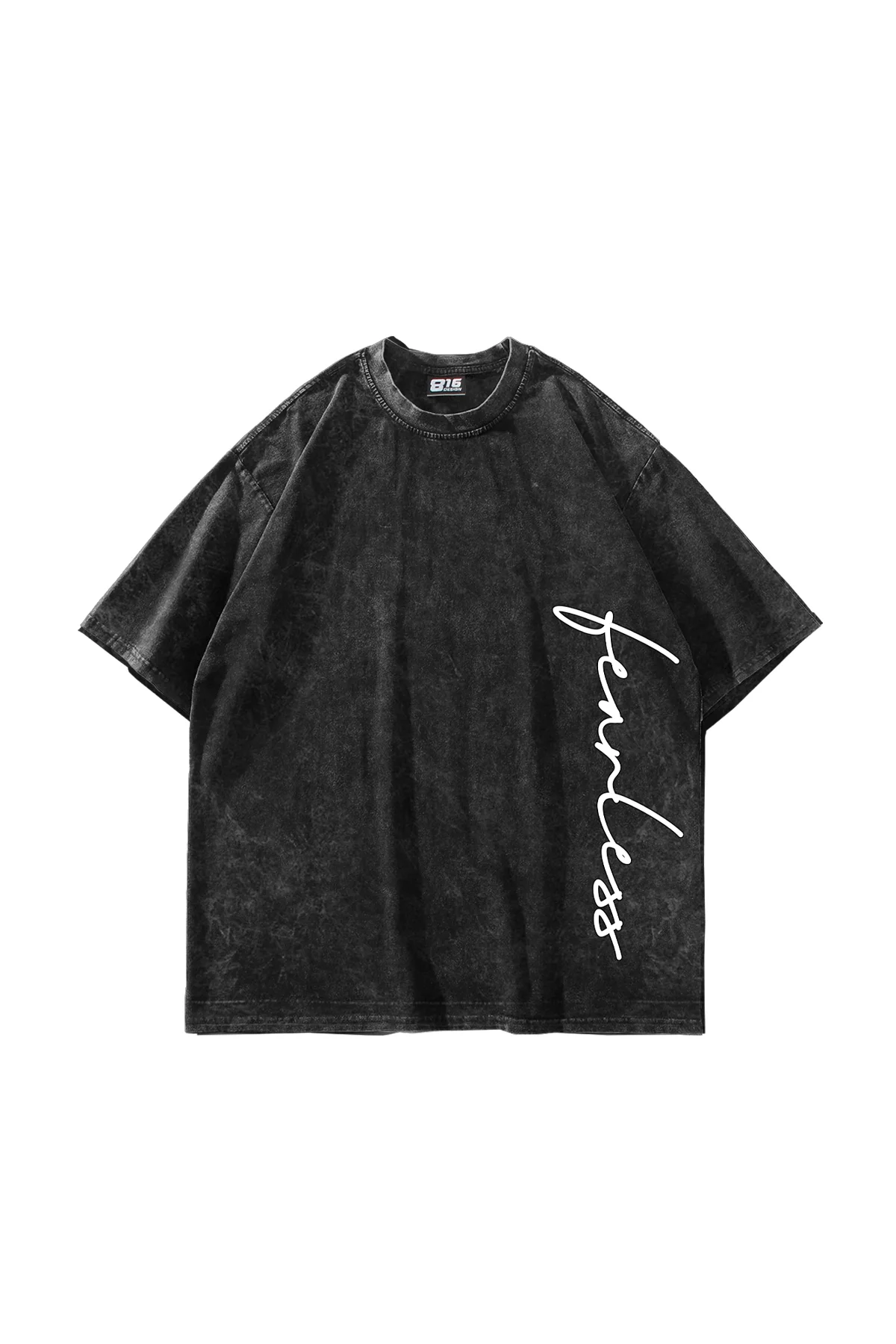 Fearless Baskılı Oversize Unisex Yıkamalı Siyah Tshirt