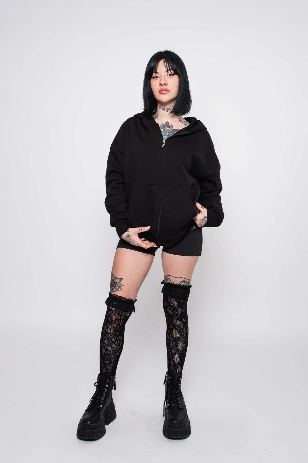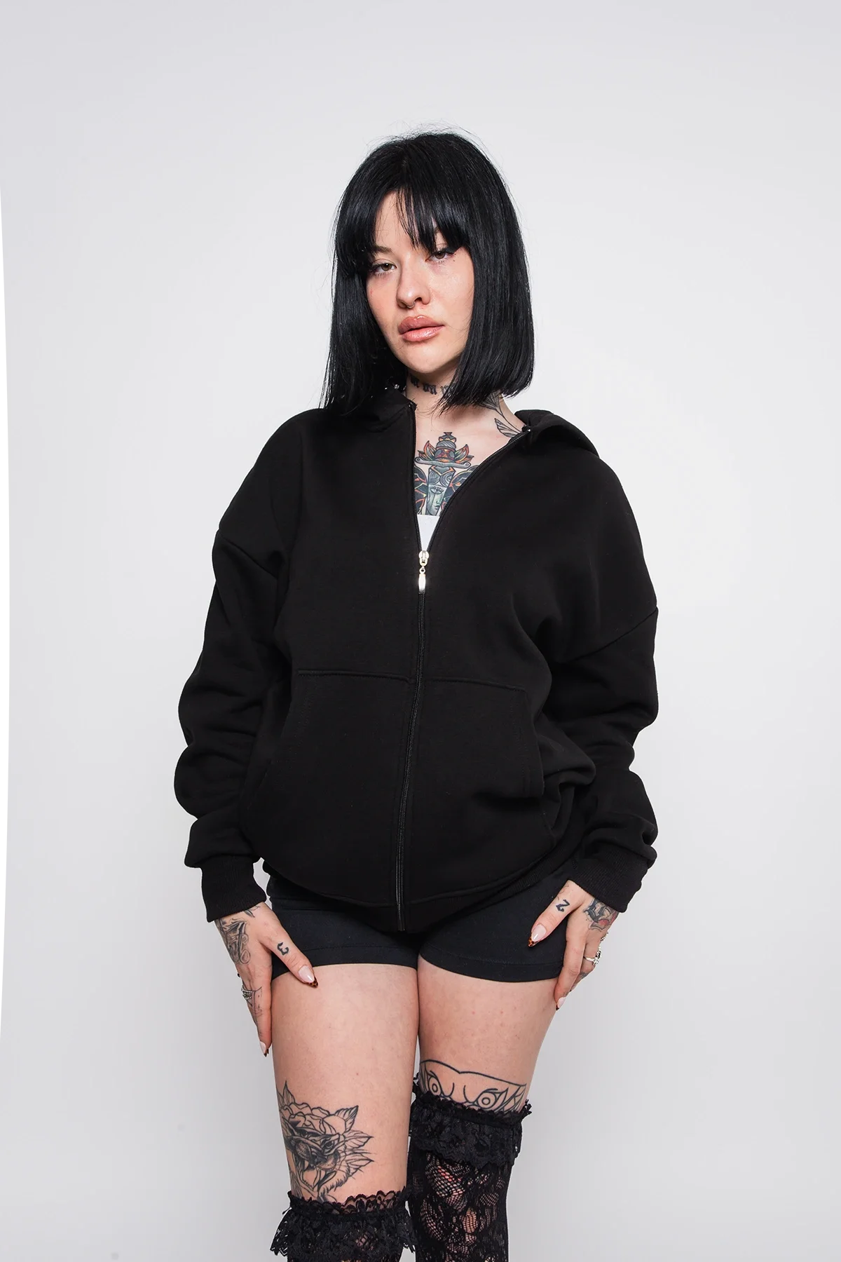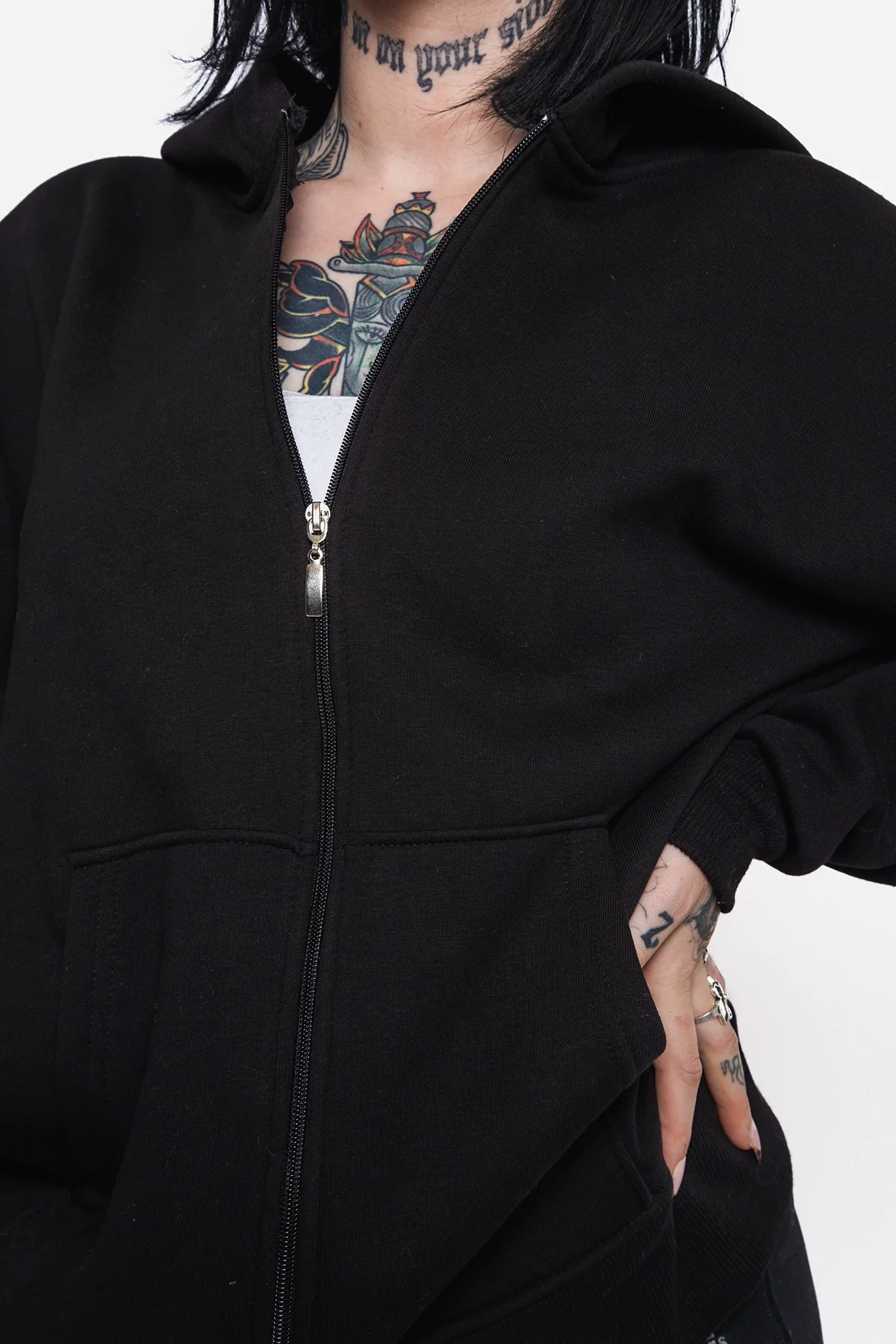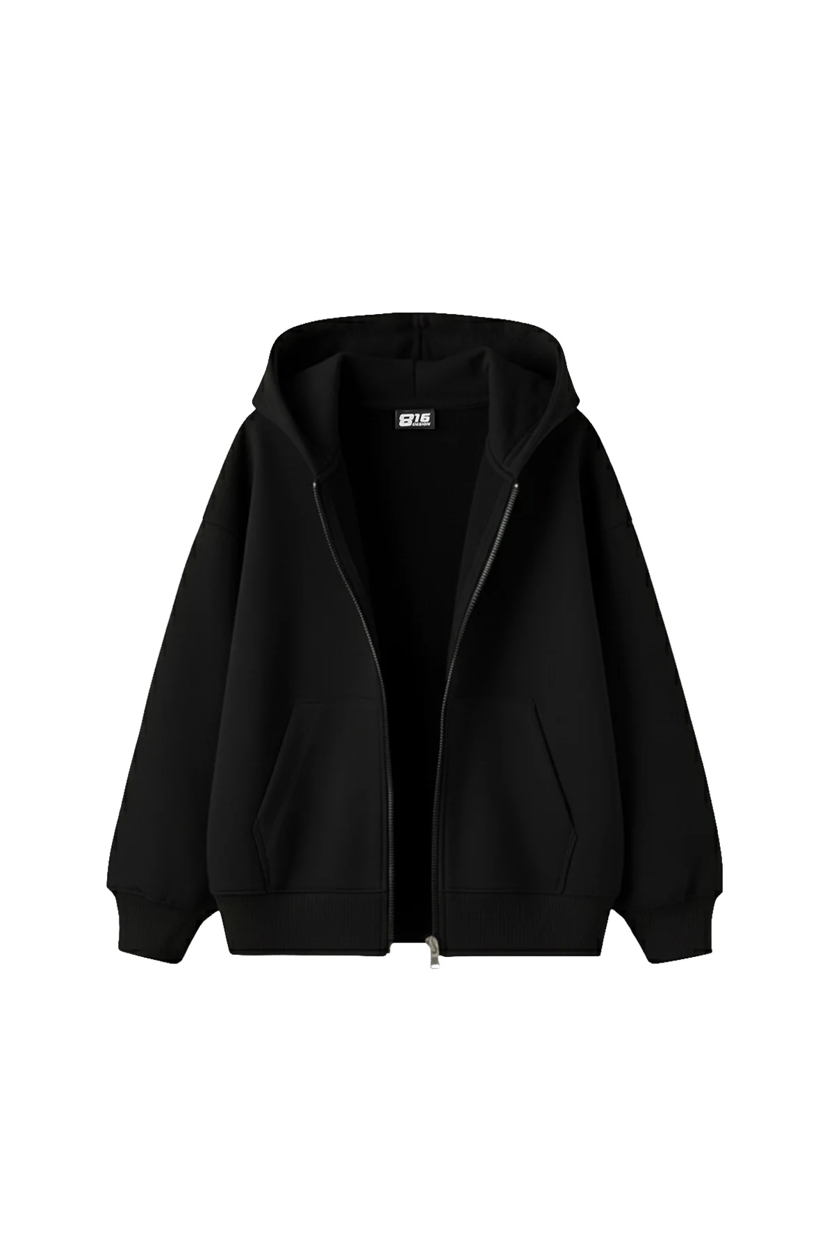 Fermuarlı Basic Zip Kapüşonlu Unisex Siyah Sweatshirt