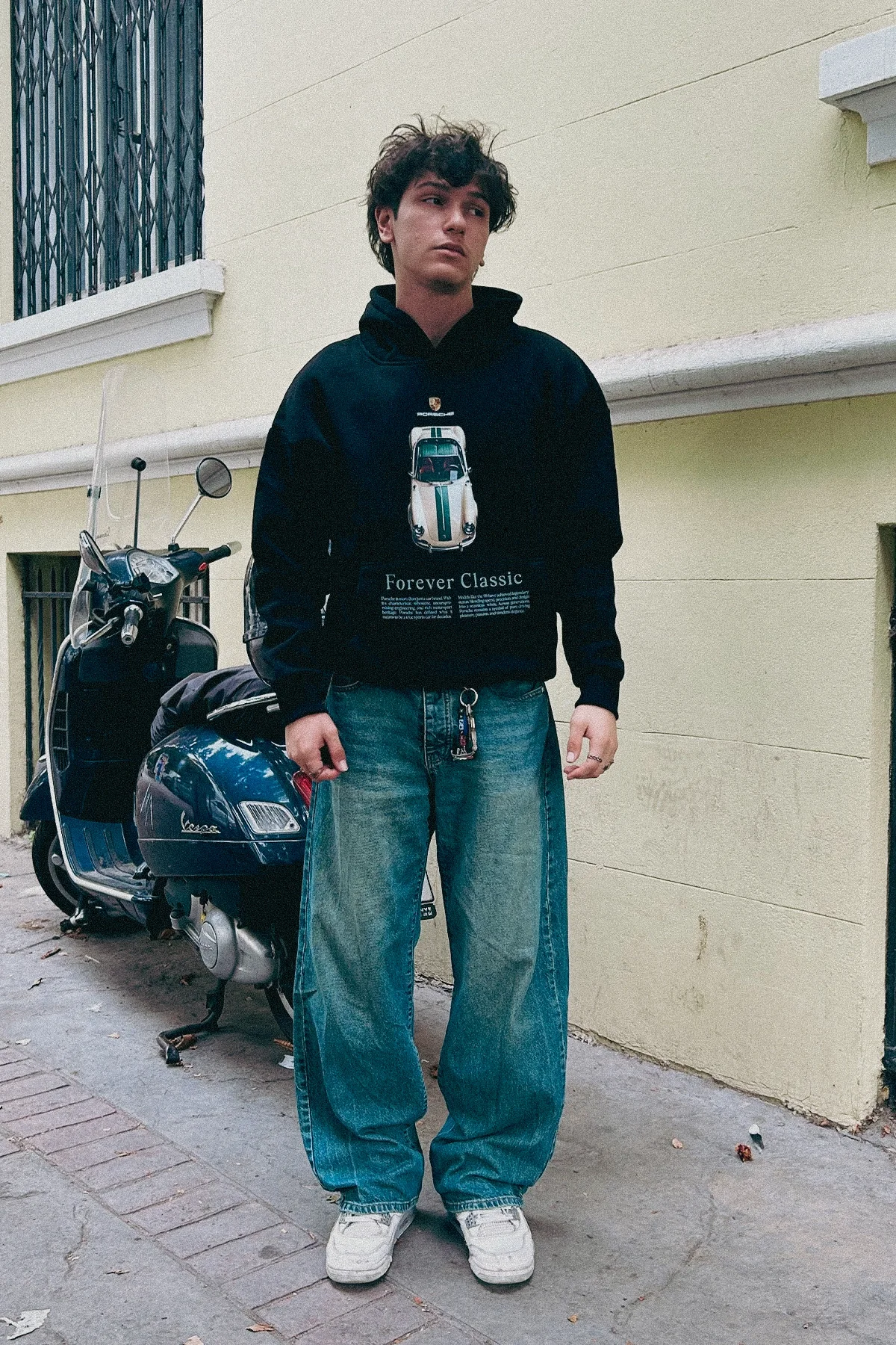 Forever Classic Baskılı Oversize Unisex Siyah Hoodie