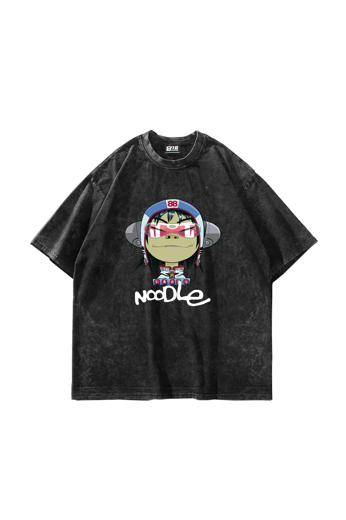 Gorillaz Noodle Baskılı Oversize Unisex Yıkamalı Siyah Tshirt