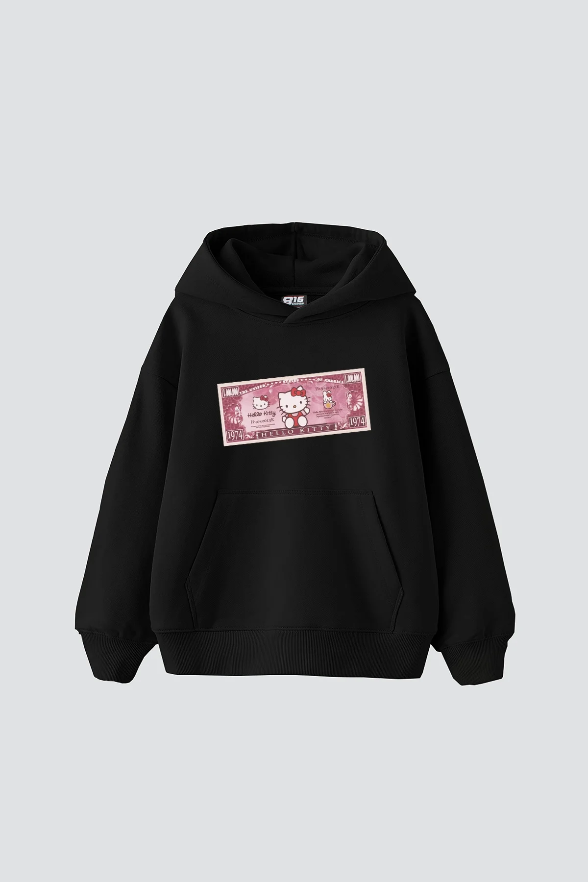 Hello Kitty Money Baskılı Hoodie, oversize kesimi ve zamansız Siyah rengiyle hem konforu hem tarzı bir araya getiriyor. Göğüs kısmındaki yazısı ve baskı detayıyla enerjik ve özgün bir görünüm sunar.