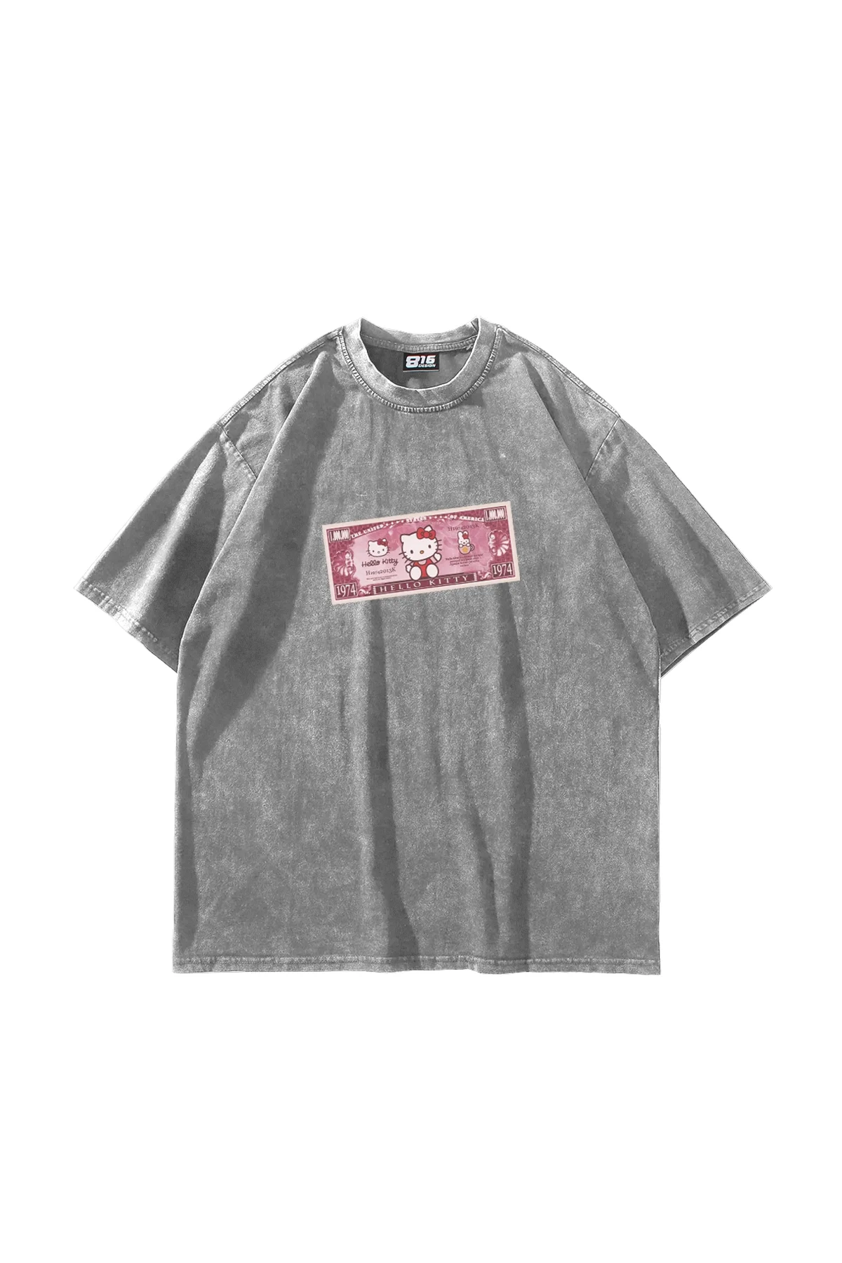 Hello Kitty Money Baskılı Oversize Unisex Yıkamalı Beyaz T-Shirt