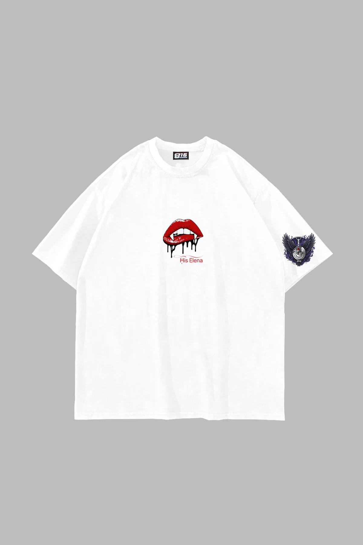 Sokak stiline asi ve özgün bir dokunuş ekleyin! His Elena baskılı Beyaz oversize unisex t-shirt, enerjik tasarımı ve rahat kesimiyle her ortamda dikkat çeker. Hem erkekler h em de kadınlar i çin ideal olan bu t-shirt, cesur bir tarz arayanların tercihi olacak.