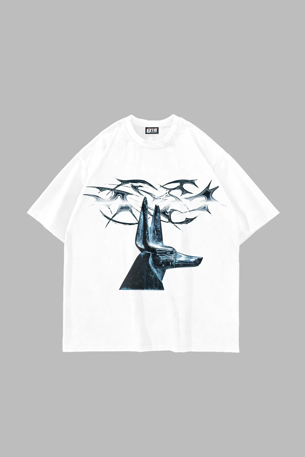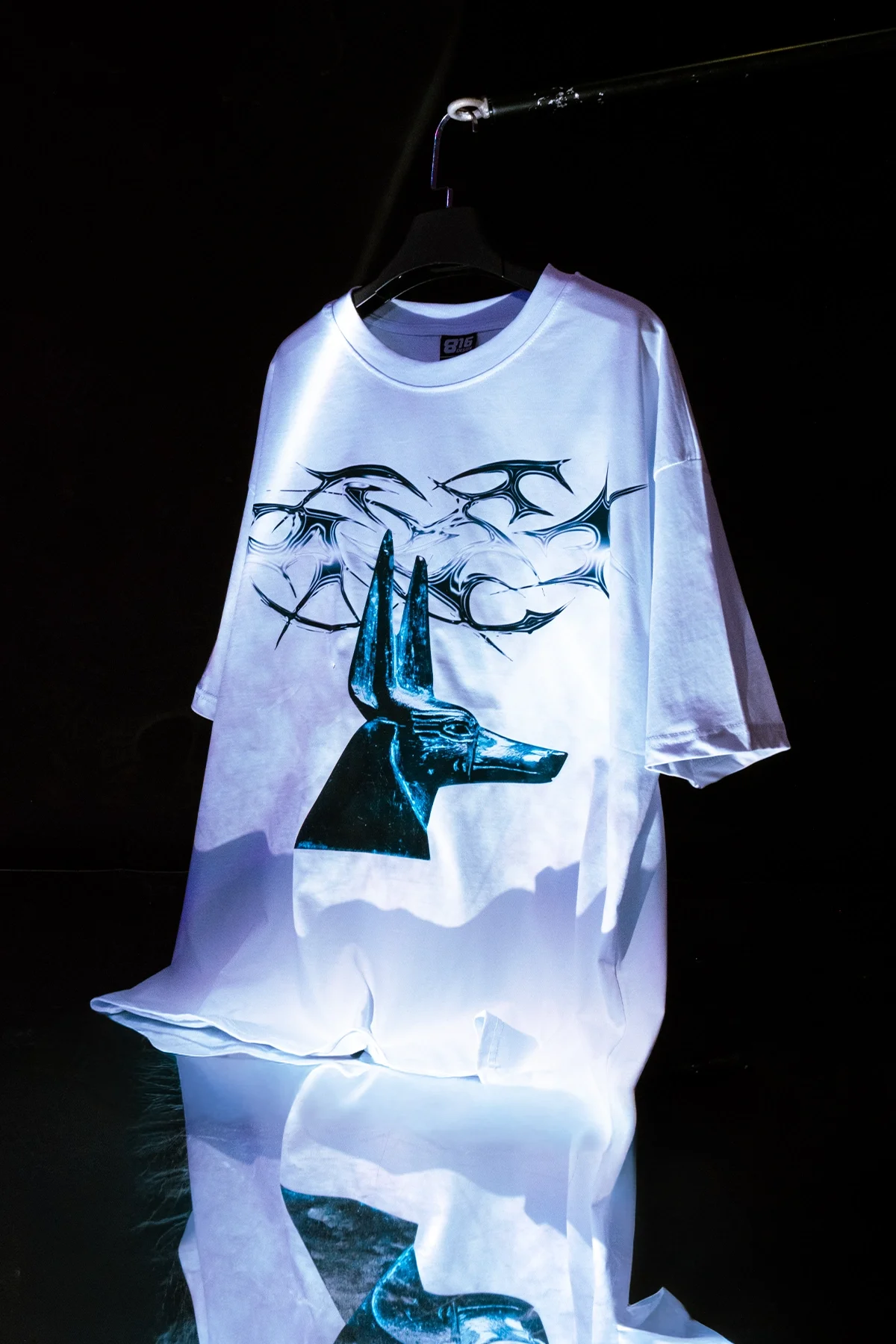 Holographic Baskılı Oversize Unisex Beyaz Tshirt